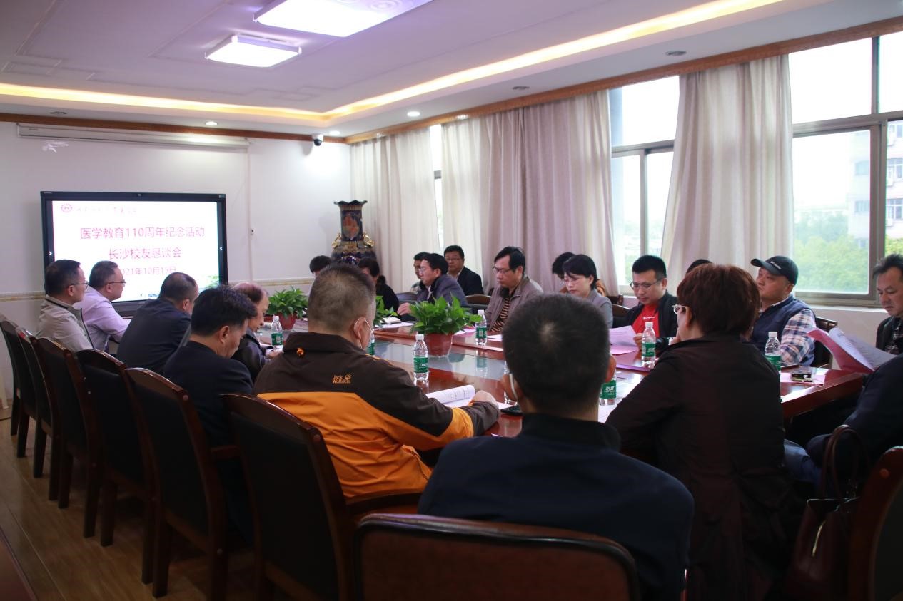 10月15日下午,在医学校友会长沙分会的倡议下,20余名校友代表应邀参加医学教育110周年纪念活动长沙校友恳谈会,金沙官网全体班子成员及学工办辅导员参加会议。会议由院长何祖平主持。