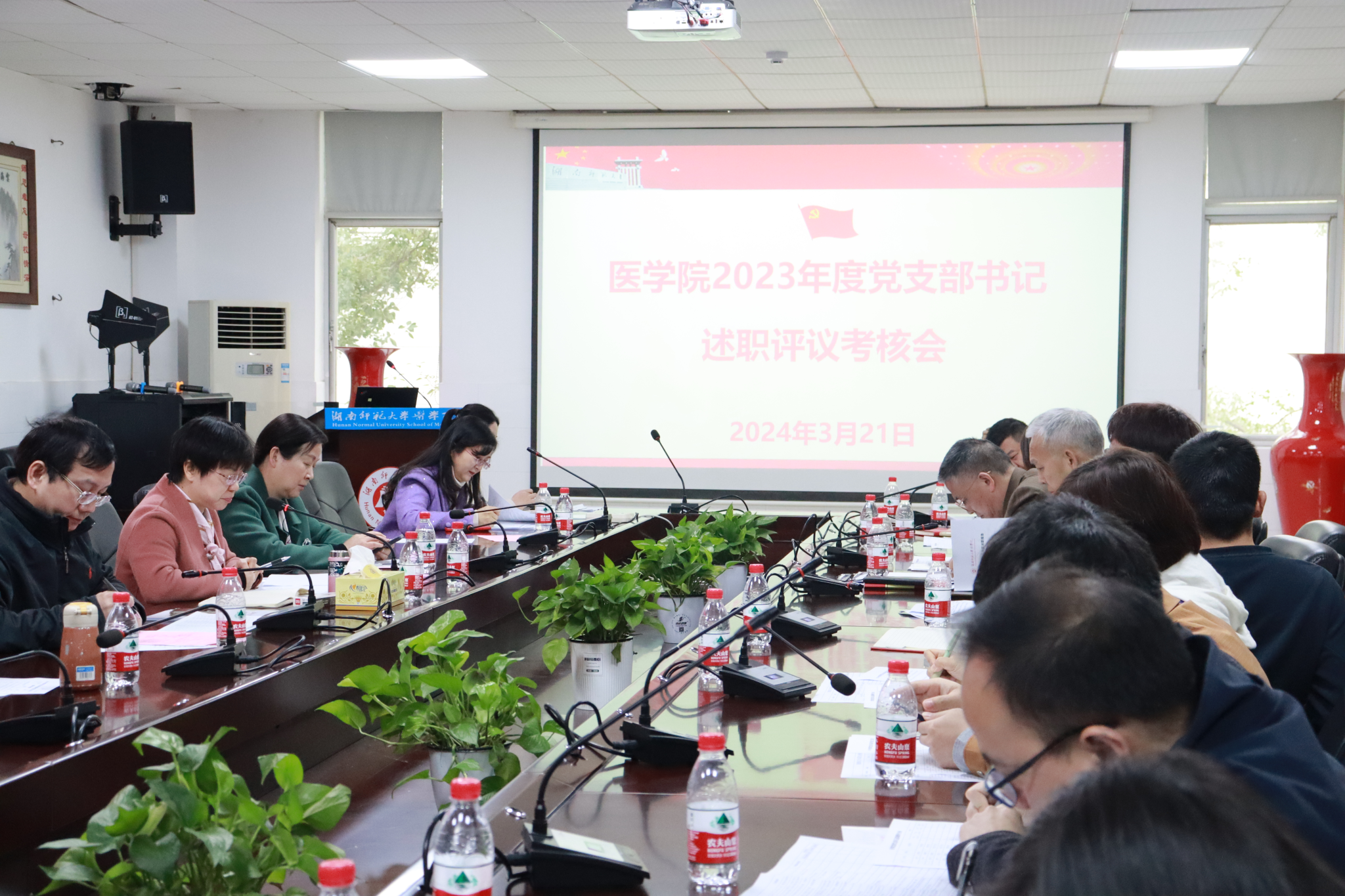 3月21日上午,金沙官网在仁医楼207会议室举行党支部书记述职评议大会,金沙官网全体班子成员、全体支部书记、教工支部支委、学生支部书记参会。院长何祖平、党委书记鄢朝晖、副院长邓文艳等出席会议,党委副书记陈松主持会议。