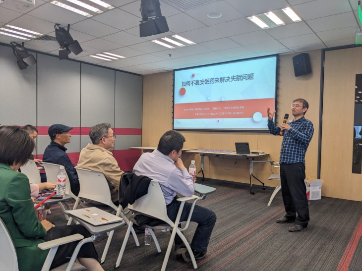 第二位讲着是同济大学附属上海市第四人民医院睡眠中心主任李启芳校友,他分享了如何不靠安眠药来解决失眠的问题。李启芳教授从神经、心理、认知和生活习惯等多方面解读了失眠产生的原因和治疗对策。李教授强调了生活习惯,现代电子产品对我们睡眠的影响,指出只要在生活中养成良好的起居习惯,同时做一个心理自我调整,自我成长的人,就会大大减少失眠的困扰。