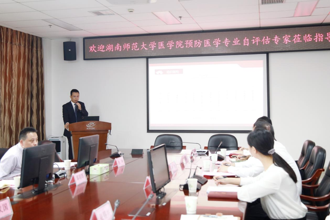 4月22日下午,在js555888金沙老品牌党委书记鄢朝晖,预防医学学科带头人、湖南省重点实验室主任吕媛教授陪同下,由中南大学湘雅公共卫生学院谭红专教授、广州医科大学公共卫生学院蒋义国教授、华中科技大学公共卫生学院余毅震教授组成的预防医学专业自评专家组,赴长沙市疾控中心考察预防医学专业实习基地人才培养和建设情况。市疾控中心党委书记、主任杨学文,副主任徐明忠、张锡兴、李杰,科研管理部、部分业务科室负责人参会,10名优秀毕业生代表列席会议。会议由中心副主任徐明忠主持。