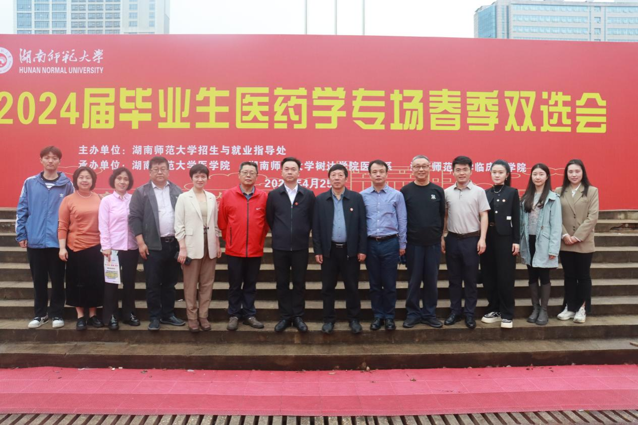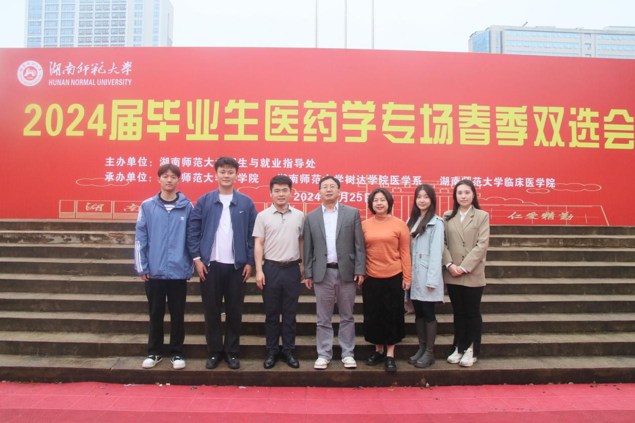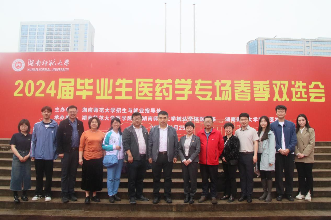 校招生与就业指导处处长田野、副处长周俊,树达学院院长向坚持、院党委书记李正益、副院长梁蓓蓓,医管办总支部书记杨洁芳,赴现场考察交流。
