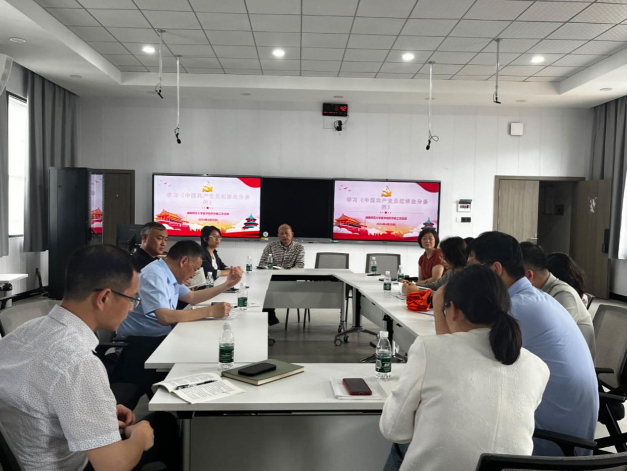 2024年4月28日中午12:30,金沙官网药学教工党支部在至真楼5楼智慧教室召开党纪学习教育启动大会,活动由支部书记杨小平主持,药学系全体党员教师参加。
