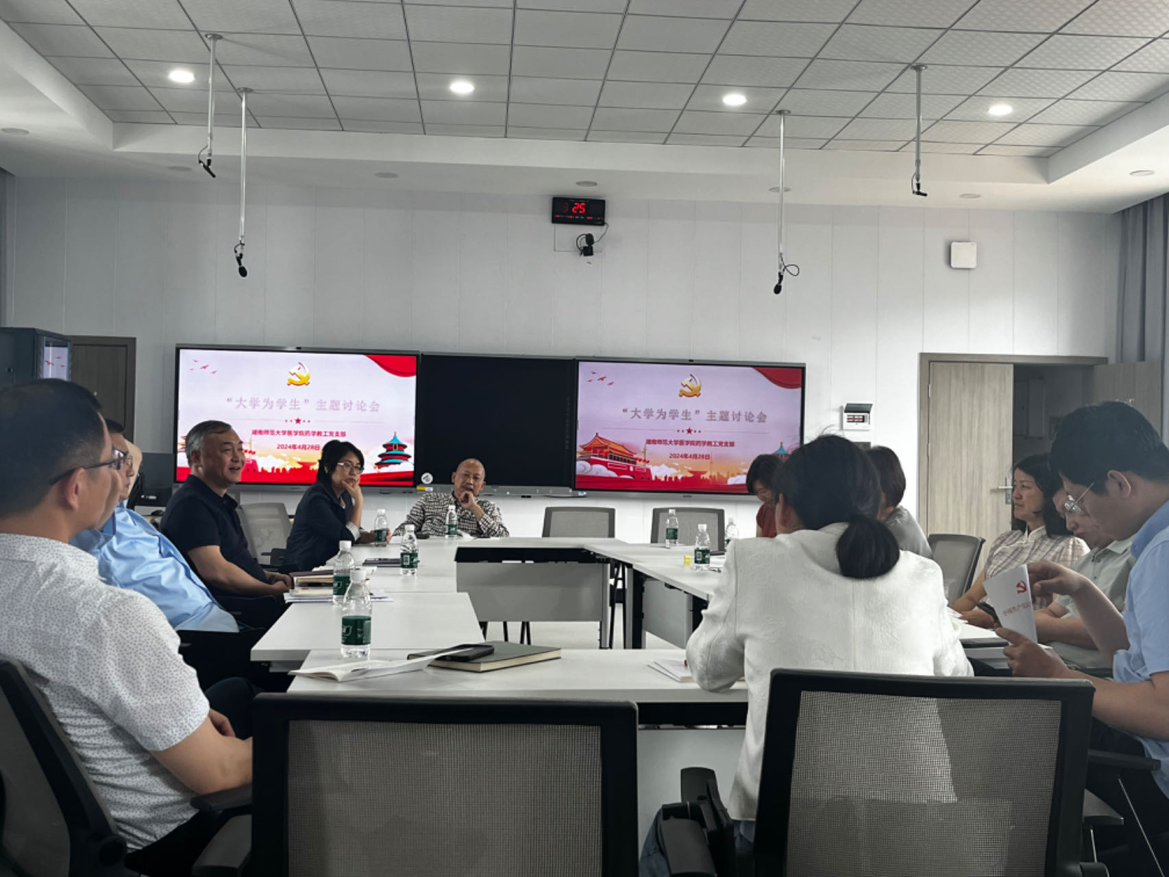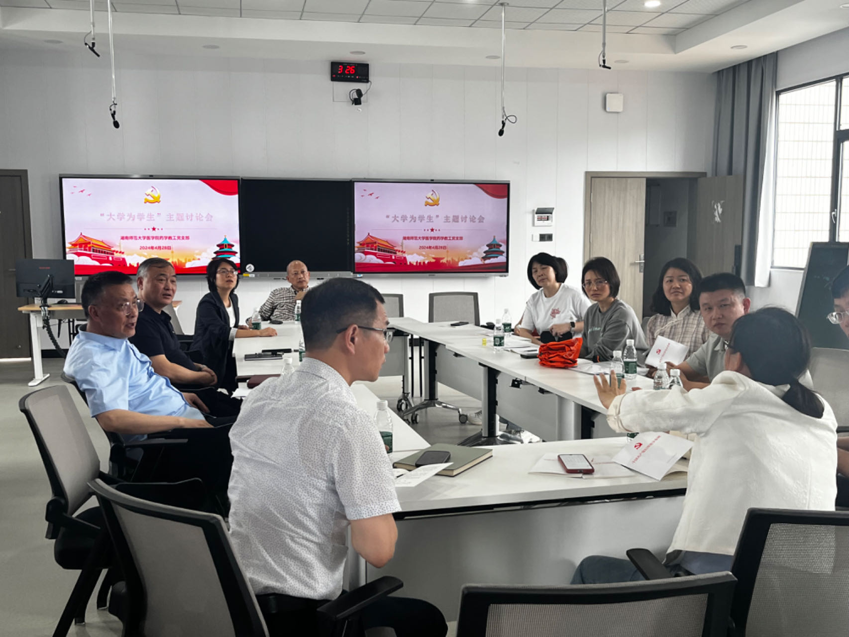 2024年4月28日中午,金沙官网药学教工党支部在至真楼5楼智慧教室召开了“大学为学生”主题讨论会,会议由支部书记杨小平主持,药学系全体党员老师参加。