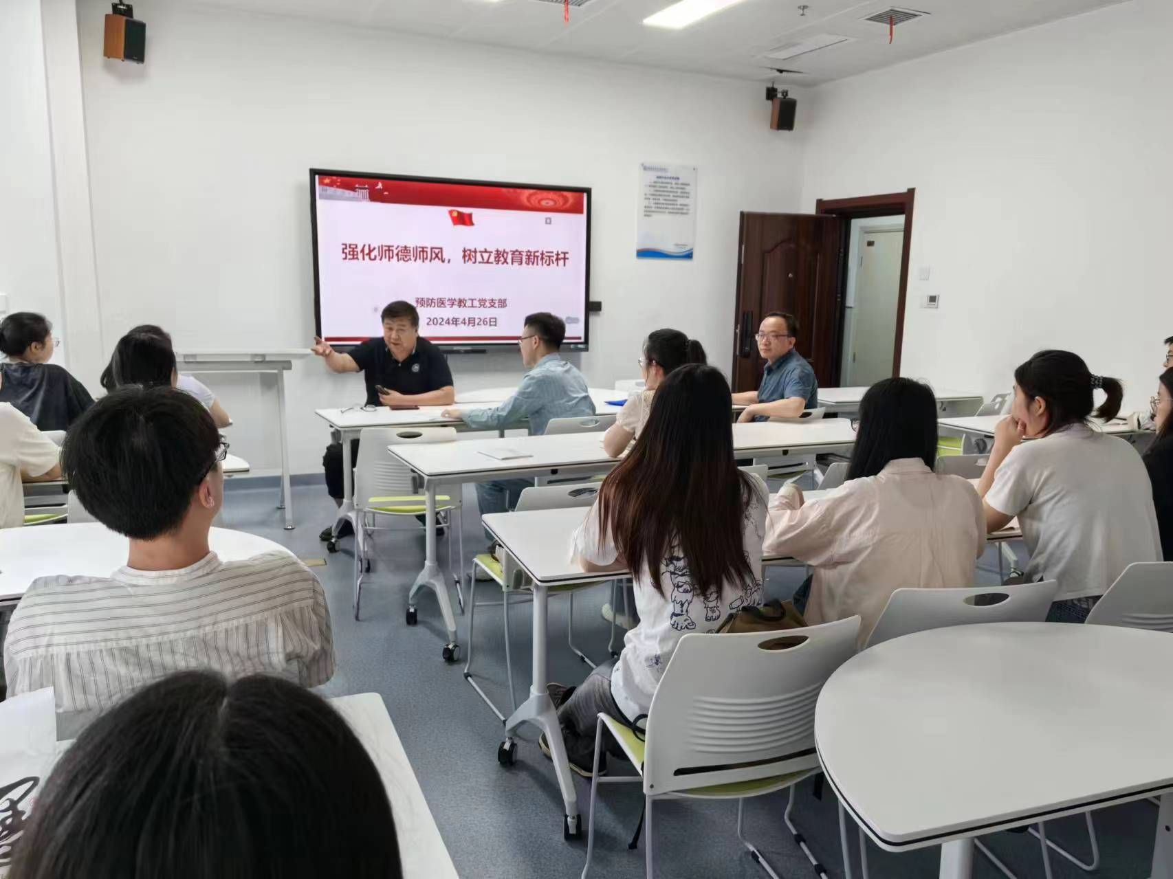 2024年4月26日中午,预防医学党支部在综合楼226召开“大学为学生”主题讨论会,支部党员以及预防专业21级、22级、23级学生代表参加了会议,院党委副书记陈松出席了会议。会议由支部书记陈适主持。