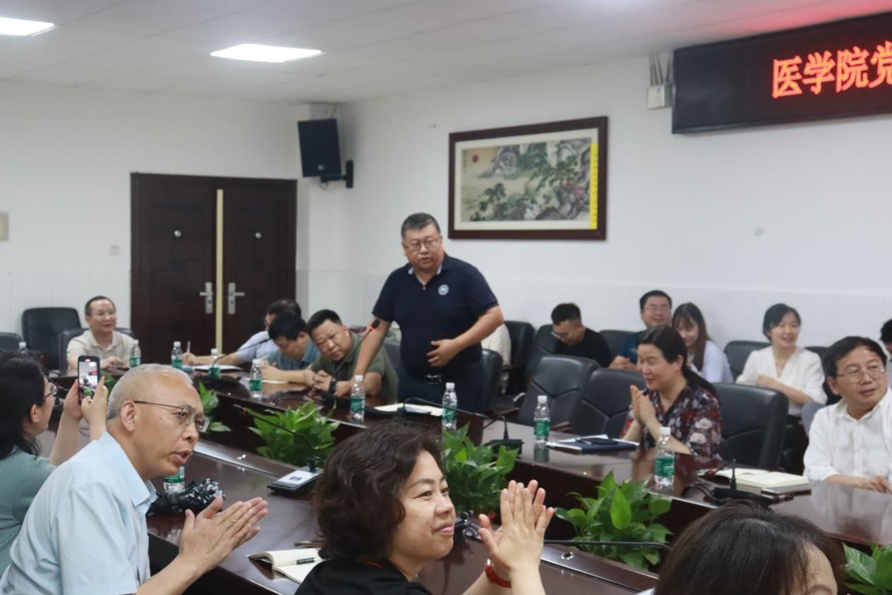 2024年5月21日下午,金沙官网在仁医楼207会议室召开党委理论学习中心组学习(扩大)会议,会议邀请了学校纪律派驻湖南师大附中纪委书记李春莲作主题为“牢‘纪’心中,知行合一”的党纪学习教育专题党课。金沙官网全体班子成员、系、办(中心)主任、支部书记和全体辅导员参加会议。院党委书记鄢朝晖主持会议。