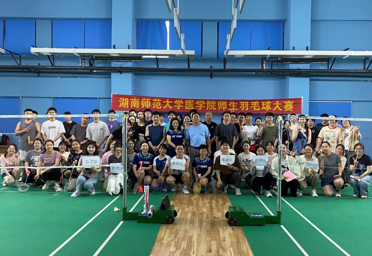 参与本次比赛的有五支队伍,分别是公共卫生队、基础医学队、药学队、护理队和教师队。赛制规定,每支队伍都派出两组男双、两组女双以及一组混双选手参赛。战队对局顺序由抽签决定,采取‘五边形积分制’两两对抗,实行每场比赛21分3局2胜制,胜利方为所在战队积1分,5场比赛结束后,按照得分情况评比一、二、三、四等奖。在主持人宣布比赛开始后,五支队伍间的比拼在四个场地轮番展开。在第一轮比赛中,护理队荣获三等奖,药学队和公共卫生队获得四等奖。基础医学队与教师队共同进入决赛阶段,展开最终较量。男双比赛中,来自基础医学队的王人柯同学和来自教师队的张明明老师用多次远距离扣杀与接球反击,呈现出一场精彩的对决,赢得了全场观众的热烈掌声和欢呼。最后,教师队和基础医学队分别获得冠军和亚军。