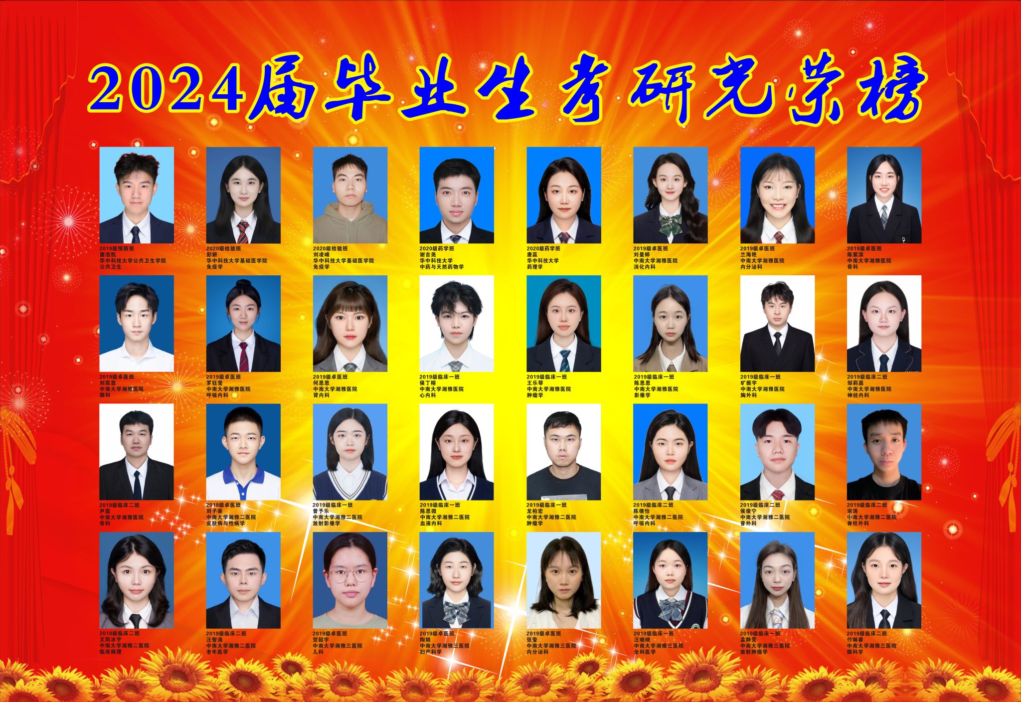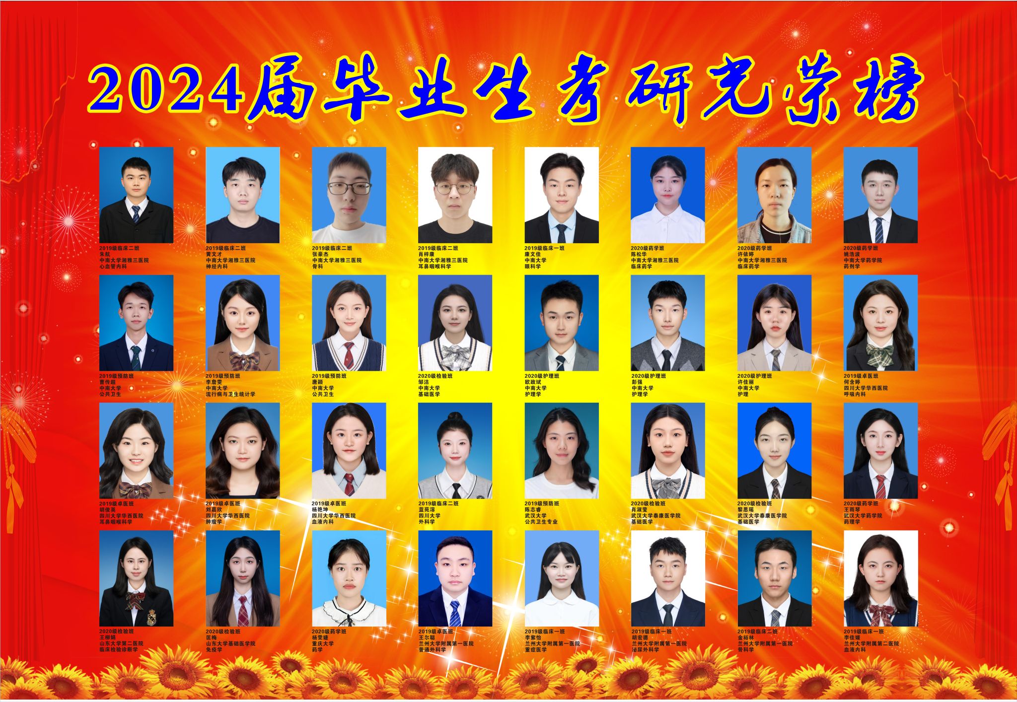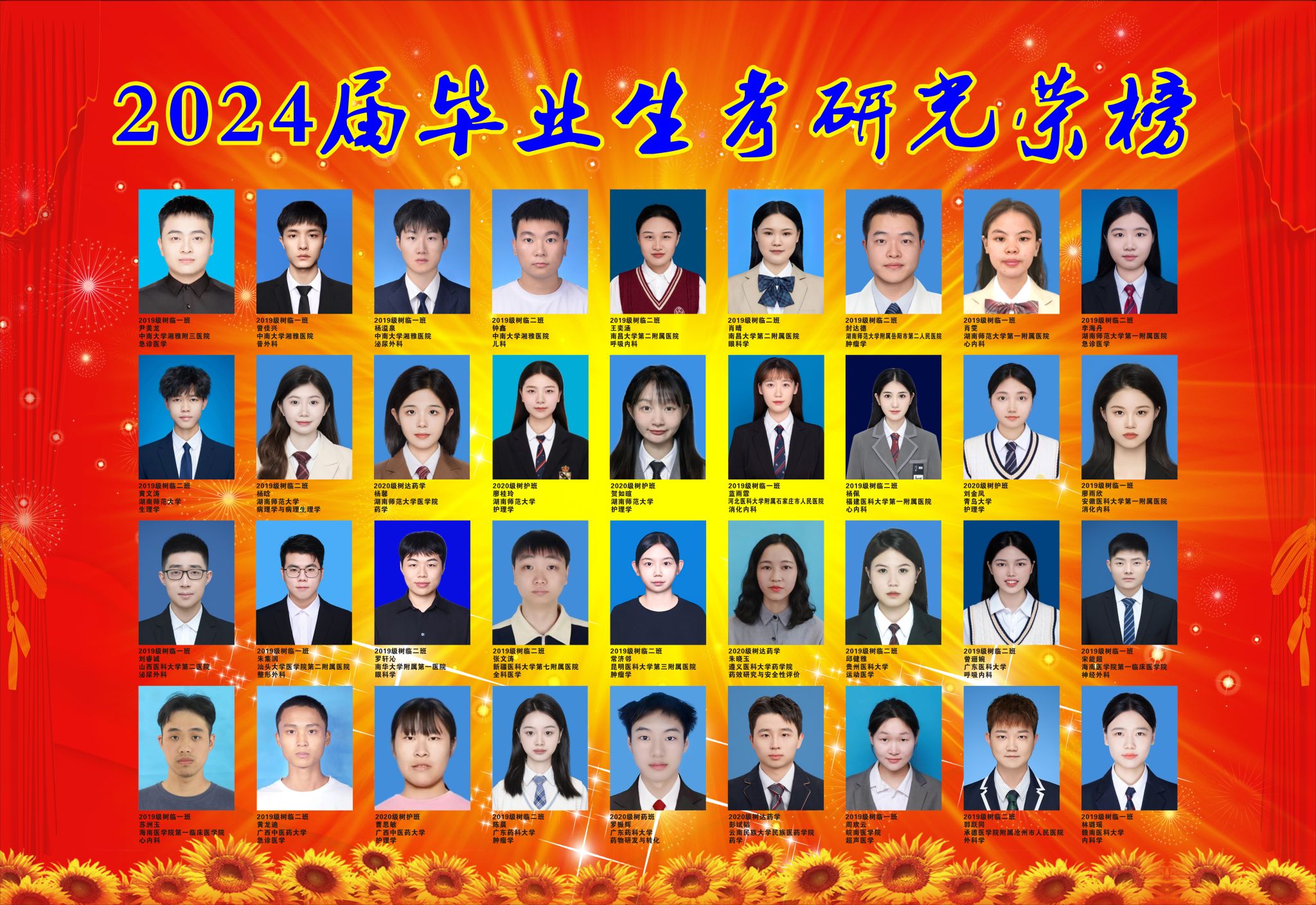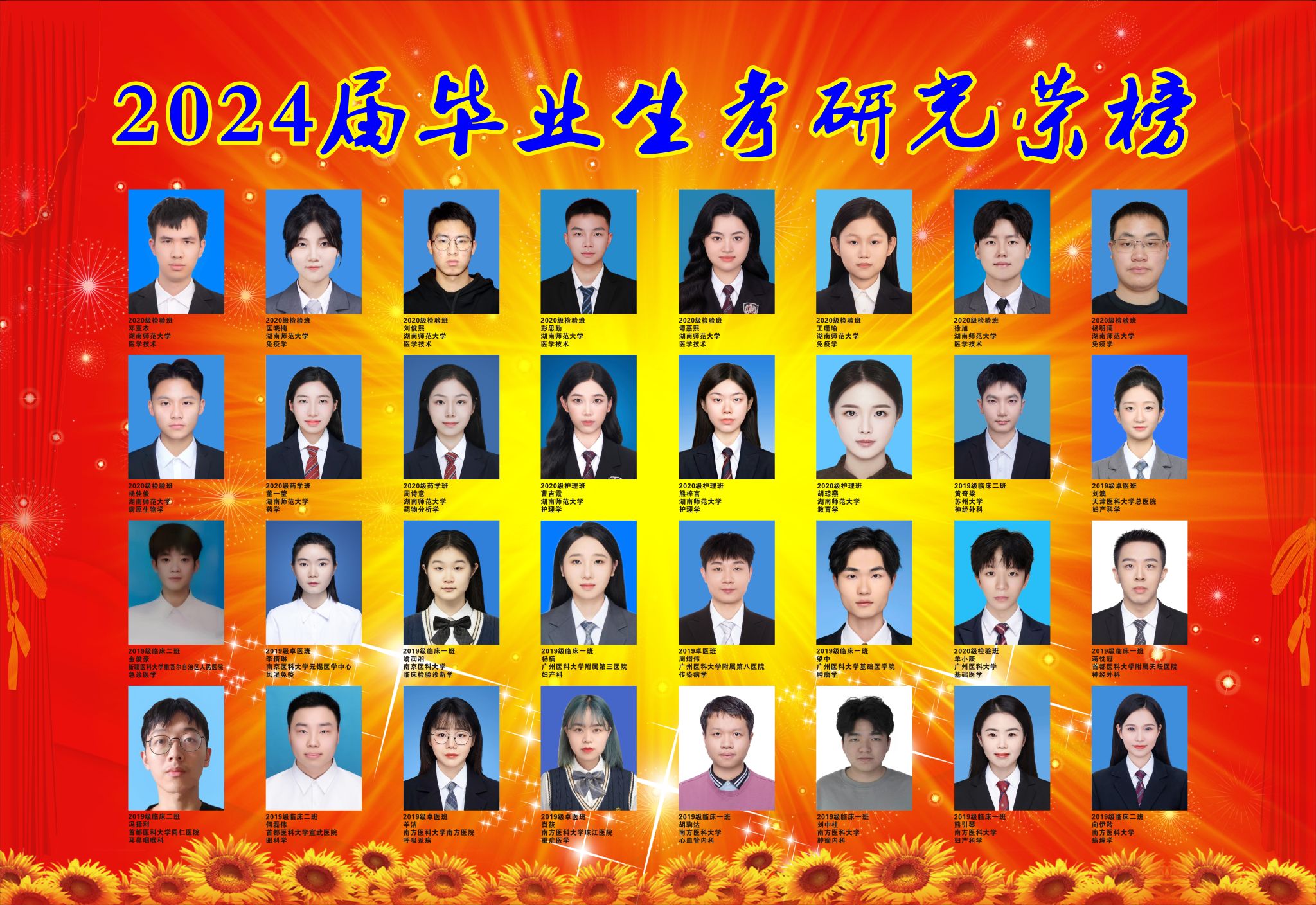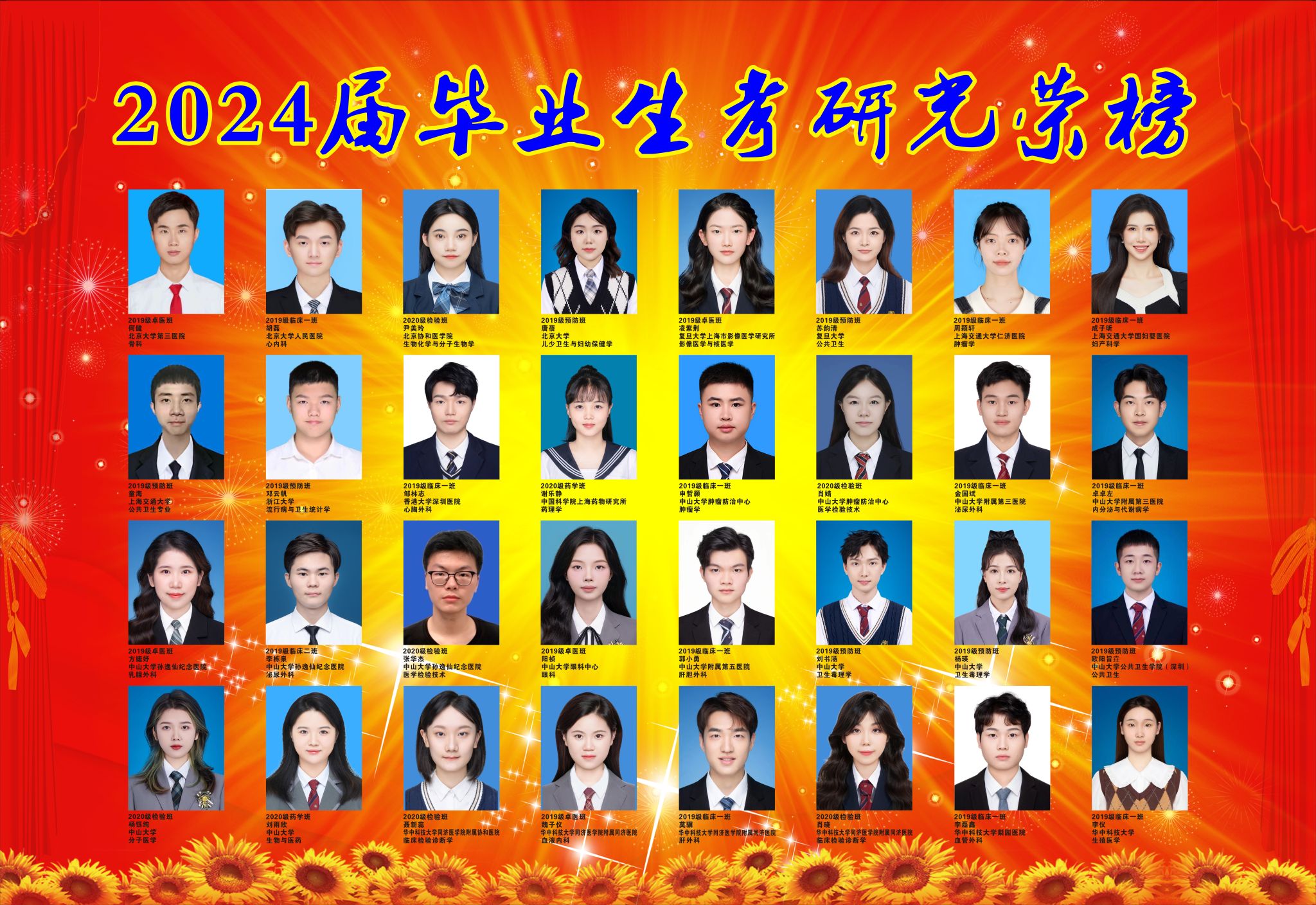 金沙官网今年毕业生共计328人,保送以及考试录取共有184人,录取率为56.09%。其临床医学专业毕业174人,成功录取116人,录取率为66.67%;医学检验技术专业毕业42人,成功录取28人,录取率为66.67%;预防医学专业毕业39人,成功录取20人,录取率为51.28%:药学专业毕业43人,成功录取14人,录取率为32.56%;护理学专业毕业30人,成功录取6人,录取率为20%。多人被“双一流”院校录取,涵盖了北京大学、复旦大学、上海交通大学、香港大学、中国科学院大学、中国药科大学、浙江大学、中山大学、四川大学、华中科技大学等知名院校。