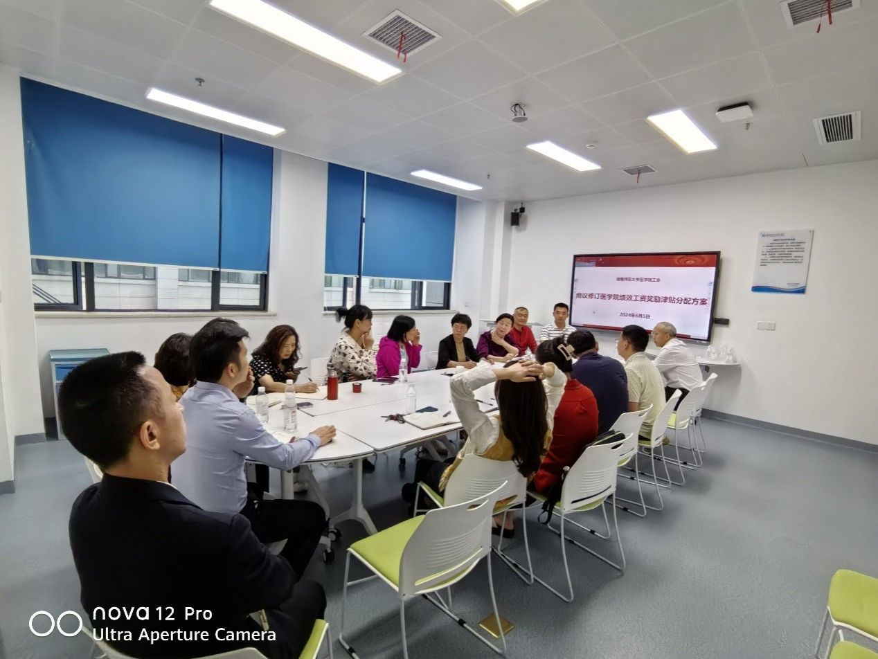 6月5日上午,金沙官网工会在综合楼228室召开绩效工资奖励津贴分配方案修改研讨会。院党委书记鄢朝晖、副院长邓文艳、全体工会委员及各系、办、中心教职工代表参加了本次会议,会议由工会主席袁仕善主持。