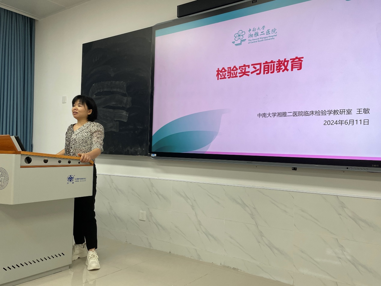 医教协同是推进医学教育改革与发展、加强医学人才培养的前提和基础,是推进健康中国建设的重要保障。为了让即将开始实习的检验学生们进一步了解医院检验医学科的运作流程以及医院各相关科室的相互关系,更快的实现从医学生到“实习检验医生”的角色转变,6月11日晚上,医学检验系邀请中南大学湘雅二医院临床检验学教研室主任、检验医学科副主任王敏教授来金沙官网给2021级医学检验技术专业本科生开展了一场实习前教育讲座。金沙官网检验系主任叶湘漓、班导师代表钟志宏、廖旻晶等参加本次了教育培训。