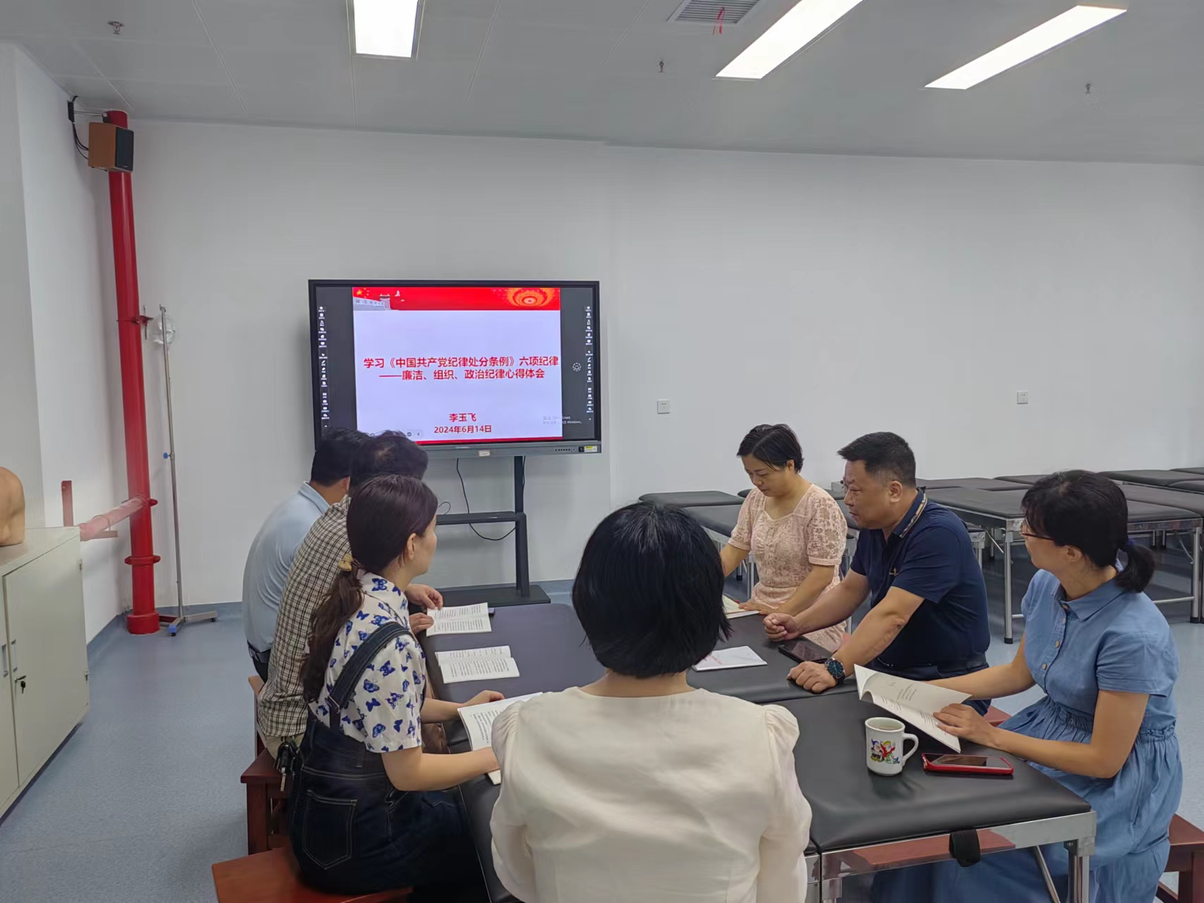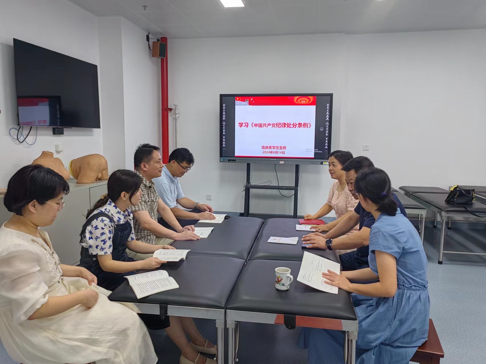2024年6月14日,为深入学习贯彻习近平总书记关于党纪学习教育的重要讲话和重要指示精神,营造学纪、知纪、明纪、守纪的浓厚氛围,临床医学党支部在综合楼109室举行专题学习。党支部书记李健主持学习,副院长李玉飞和支部全体党员参加。