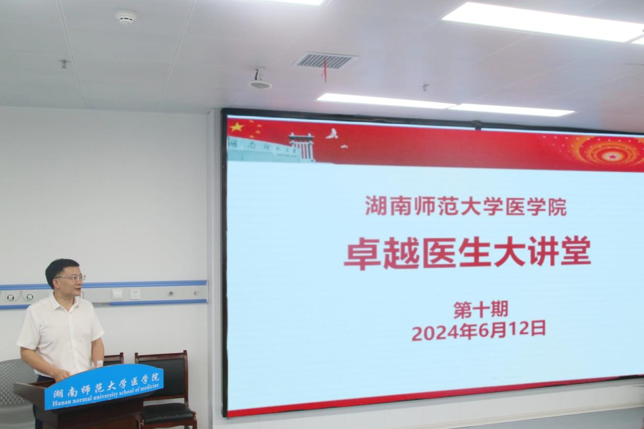 为培养学生的人文素养和道德情操,6月12日下午,长沙市妇幼保健院党委书记、湖南中医药大学硕士研究生导师张树生主任医师应邀做客金沙官网第十期卓越医生大讲堂,开展以“漫漫白衣路,少年追光时”为题的讲座。金沙官网院长何祖平、党委书记鄢朝晖、部分临床医学系老师及23级学生参加讲座。