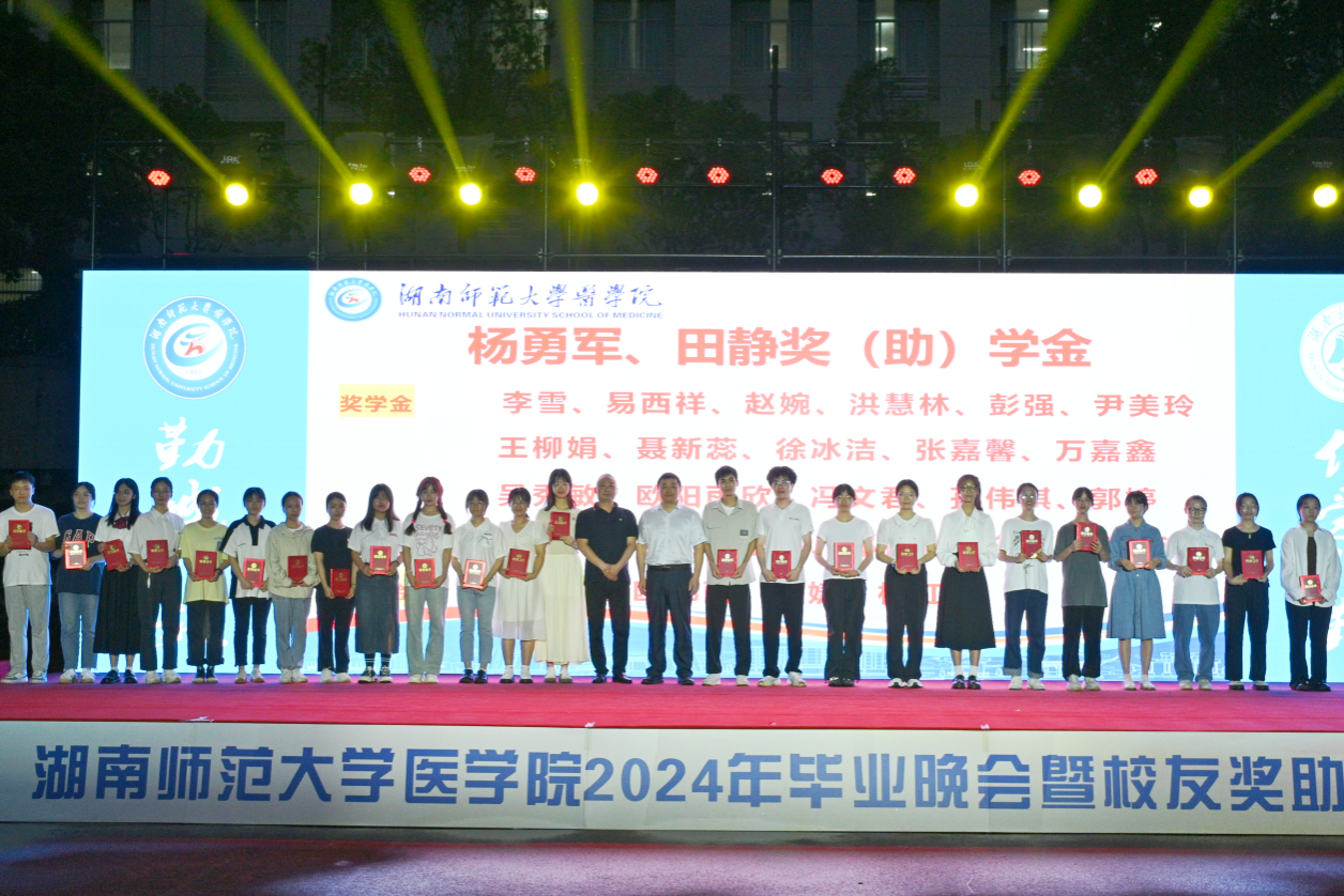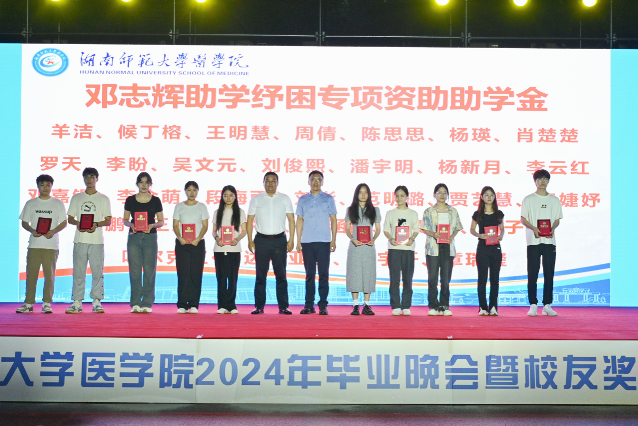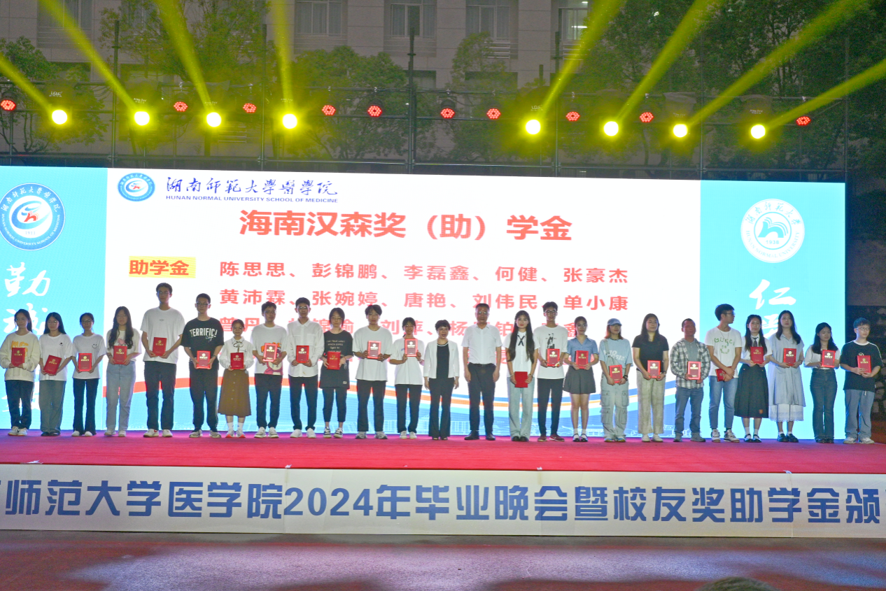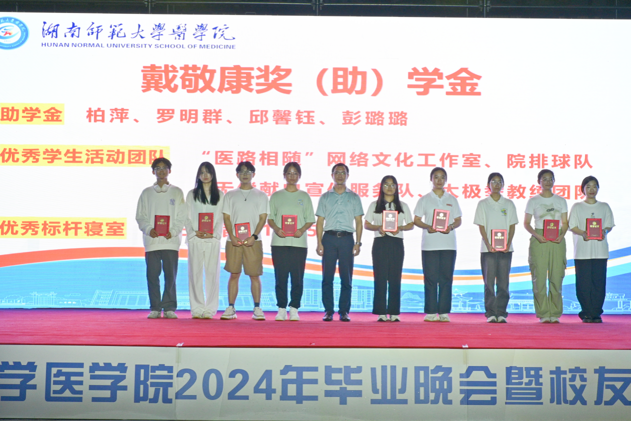 本次颁奖典礼共颁发了何祖平—蒋吉吉医学之星奖学金、长沙市妇幼保健院奖(助)学金、海南汉森奖(助)学金、刘红蕾奖学金、刘习明奖学金、凯普创新创业奖学金、戴敬康奖(助)学金、杨勇军-田静奖(助)学金、南京江河华晟奖(助)学金、向延明助学金、东莞友华医院奖(助)学金、研究生康源奖学金、金圣达助学金、邓志辉助学纾困专项资助助学金等十四项,共294名同学与团队获奖,部分校友上台颁奖。