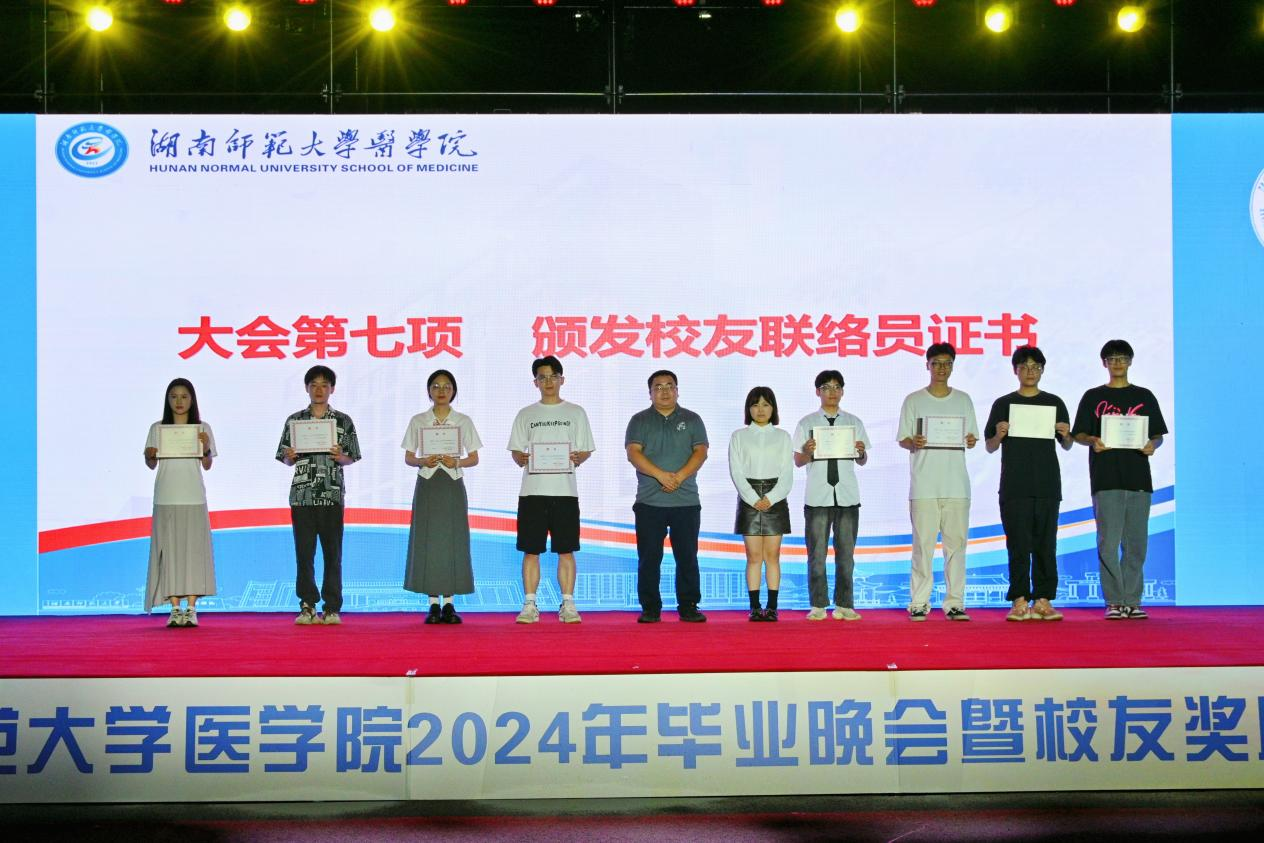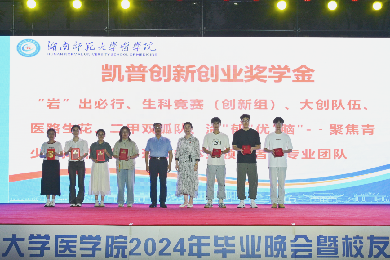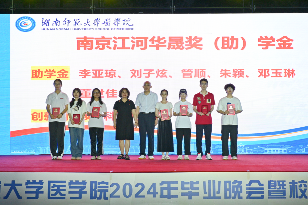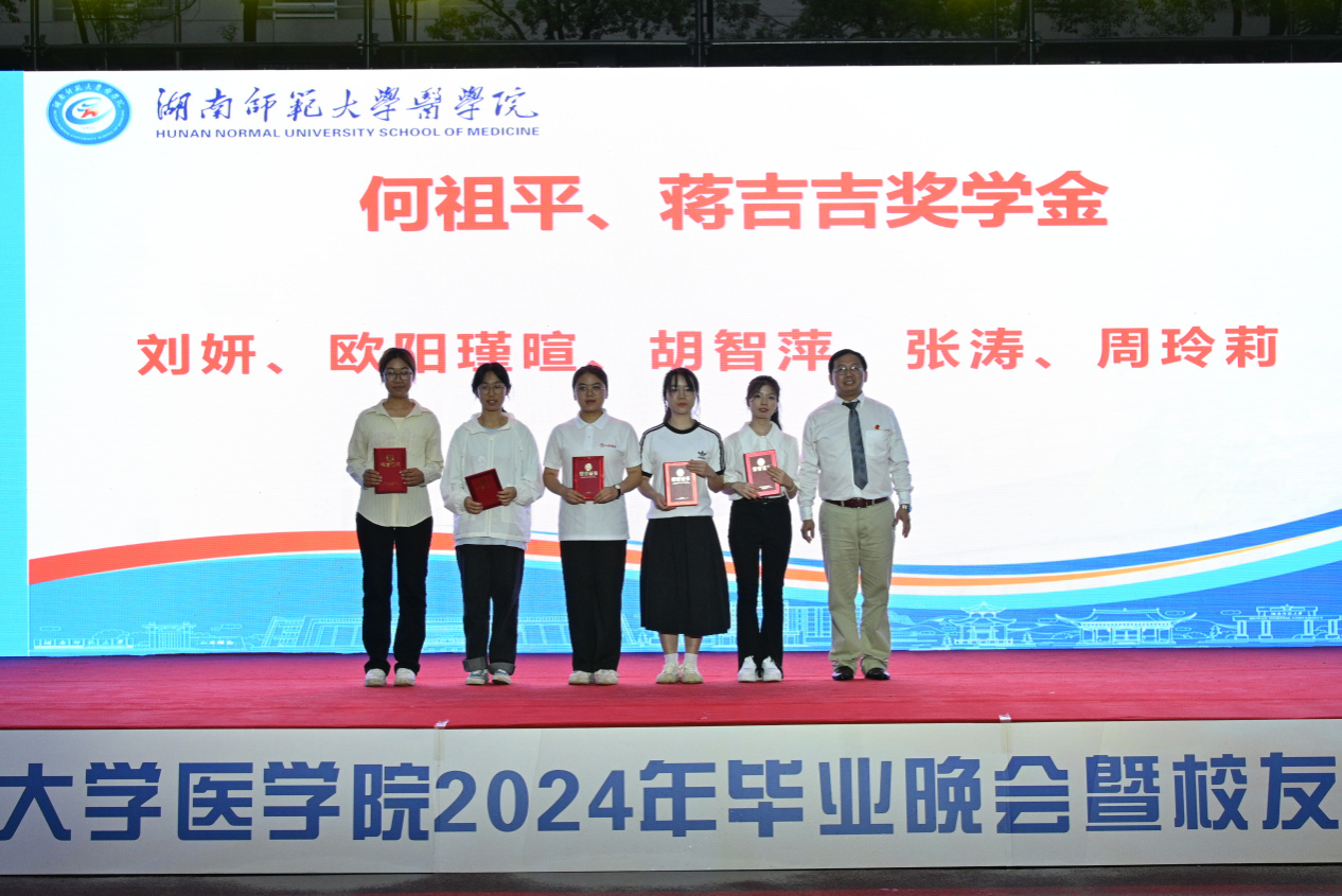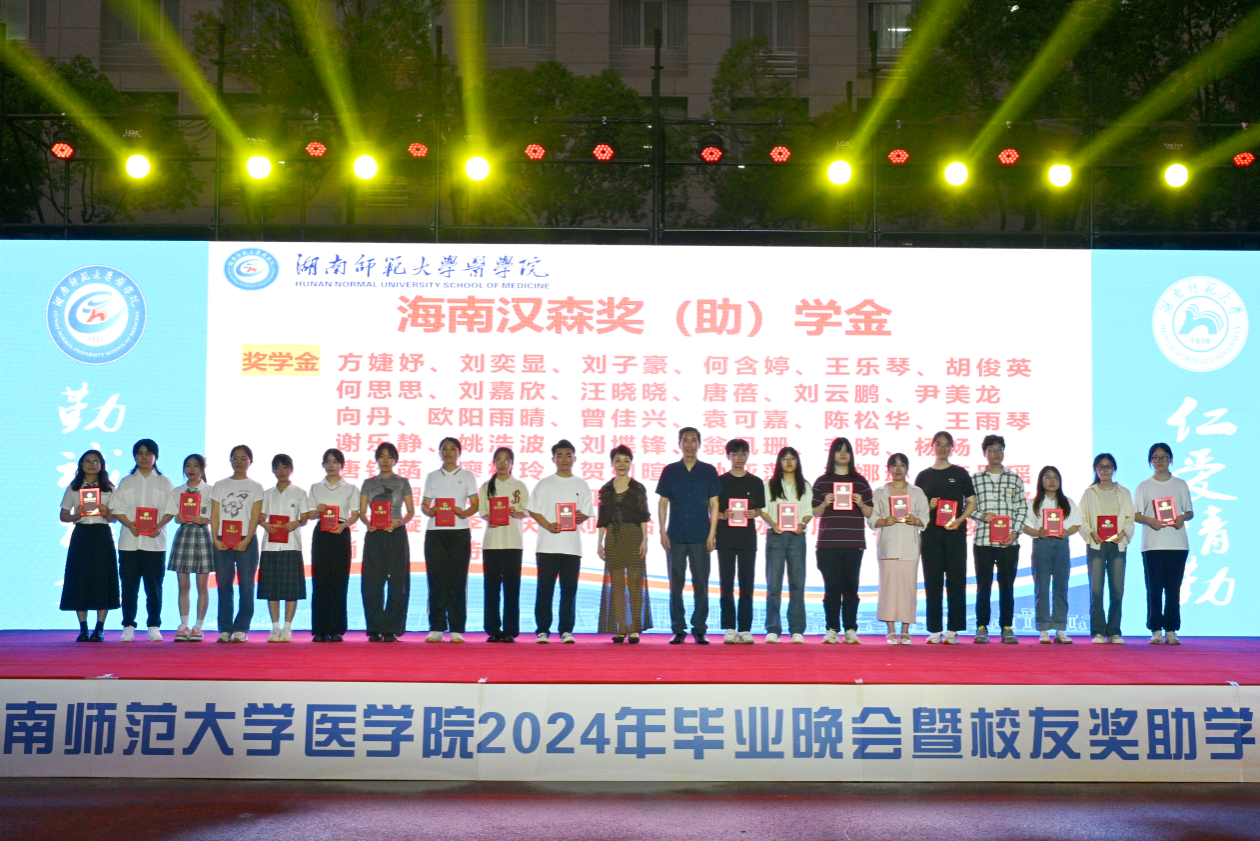 本次颁奖典礼共颁发了何祖平—蒋吉吉医学之星奖学金、长沙市妇幼保健院奖(助)学金、海南汉森奖(助)学金、刘红蕾奖学金、刘习明奖学金、凯普创新创业奖学金、戴敬康奖(助)学金、杨勇军-田静奖(助)学金、南京江河华晟奖(助)学金、向延明助学金、东莞友华医院奖(助)学金、研究生康源奖学金、金圣达助学金、邓志辉助学纾困专项资助助学金等十四项,共294名同学与团队获奖,部分校友上台颁奖。