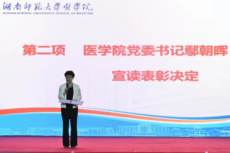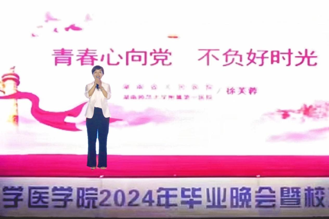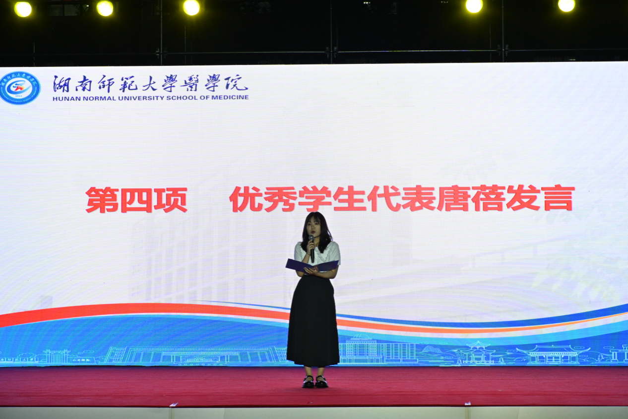 随后,优秀学生代表、第十九届师大之星荣誉称号获得者、2019级保送北京大学的唐蓓同学作为学生代表发言。她表示,自己的成长和成就离不开良师益友的支持帮助,感谢我校老师对自己的关心和帮助,感谢父母、亲人对自己的支持,她将继续努力,为医学事业发展做出自己的贡献。