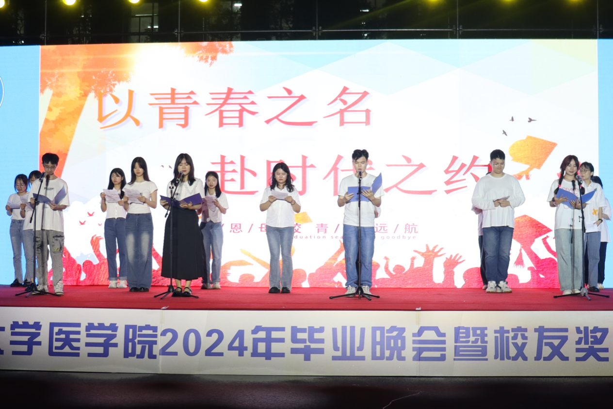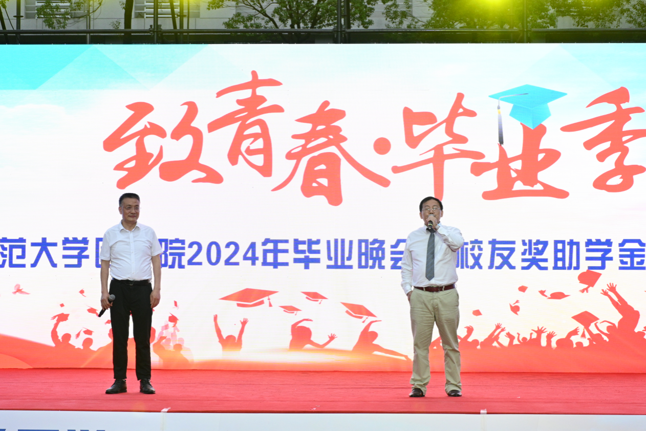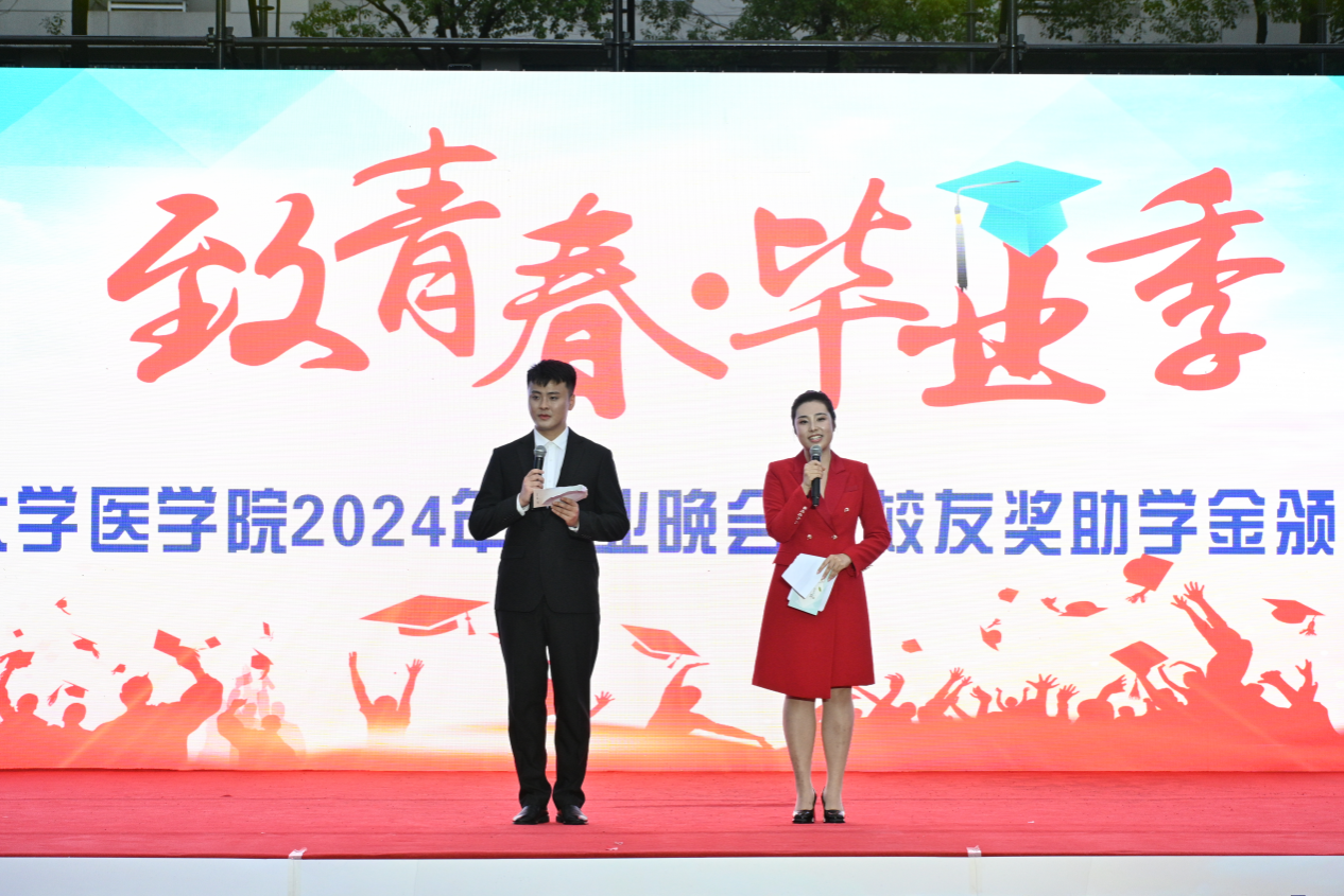 6月17日晚,金沙官网于咸嘉湖校区田径场隆重举行“青年自强 挺膺担当”榜样力量2023年度金沙官网校友奖助学金表彰大会暨2024届毕业晚会。我校原常务副校长、我校医学校友会顾问卢岳华教授,我校原副校长、我校医学校友会会长瞿树林教授,部分校友代表,我校教育基金会副秘书长刘芸玲老师受邀出席会议,金沙官网领导班子、工会主席、重点实验室主任及各系办教师参与本次活动。