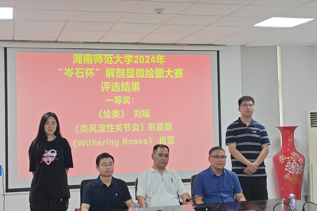 为提高医学生综合素质,弘扬医学形态学绘图与科普文化,促进金沙官网人文智育发展,6月16日上午,金沙官网在仁医楼207会议室举办2024年“岑石杯”解剖显微绘图大赛决赛。湖南省解剖学会理事长、湘雅js555888金沙老品牌潘爱华教授、中南大学湘雅医院病理科副主任胡永斌教授、云南岑石教学设备有限公司总经理文中平受邀出席活动,并担任评委评审此次决赛作品。