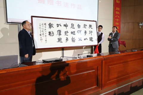 在捐赠仪式上,院长何祖平、副书记谢罗庚、副院长张坚松、邓文艳为设立奖学金的捐赠校友谈发金、程泽能、钟浩光、仇建波、曾令辉和88个以班级为单位进行捐赠的校友颁发了证书,现场接受了校友张志为学院捐赠的书法作品。