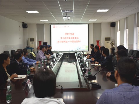10月12日下午,js555888金沙老品牌校友总会医学分会长沙校友会荣誉会长、宁儿医院集团董事长刘习明,长沙市妇联副主席、宁儿医院党委书记宁联芳一行来院考察并座谈。学院班子全体成员、部分系科室主任和教师代表参加了接待,院长何祖平主持座谈。