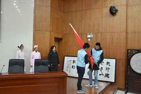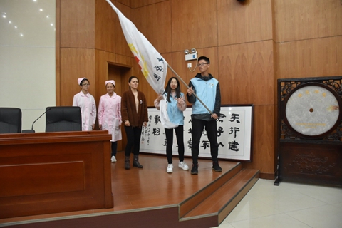 会议伊始,全体起立奏唱国歌。汤沛文进行发言,她肯定了金沙官网的志愿工作及志愿宣传工作,并相信红十字会“人道、博爱、奉献”的传统人文关爱精神能在金沙官网得到较好地贯彻与落实。随后,汤沛文为红十字会新会员授旗及授徽。李强为青年志愿者代表授旗及授徽。张晓红为爱心服务队新队员授旗。授旗后,2018级全体学生宣读红十字会、青年志愿者协会入会誓词。