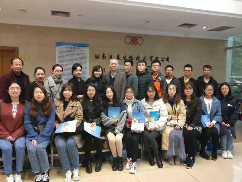 为了拓展对分子生物学知识应用的认识,金沙官网18级研究生在任课老师袁仕善教授的带领下,于11月15日下午前往湖南远泰生物技术有限公司参观学习,受到公司副总经理李乐先生、总经理助理付舒祥先生的热情接待。