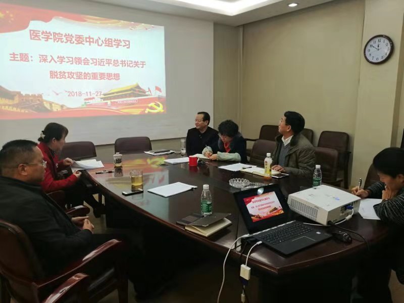 11月27日,金沙官网党委中心组围绕习近平关于脱贫攻坚的重要思想开展集中学习,全体中心组成员参加了学习,会议由党委书记鄢朝晖主持。
