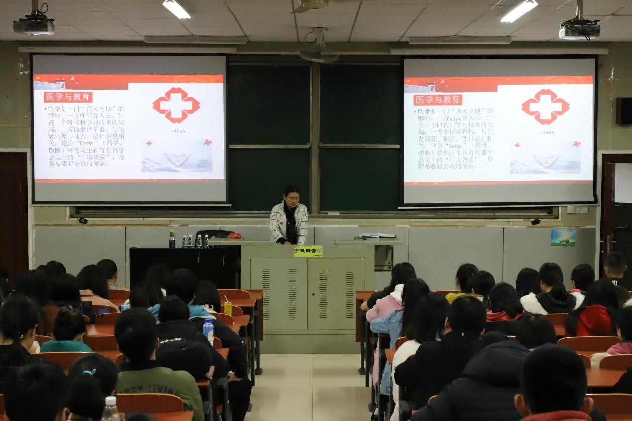 孙雯波结合医学教育的特点,介绍全国教育大会基本情况和重要意义。她认为医学是一门“顶天立地”的学科,一方面高耸入云,站在一个时代科学与技术的尖端;一方面世俗草根,与生老病死、痛苦、德行息息相关,这份“cross”(跨界、横断)特性天生具有传播学意义上的“广场效应”,最容易激起公众的惊骇。因此,医学教育对于国计民生分外重要。她带领大家全面解读了全国教育大会的精神要义,就大会提出的战略思想、历史事实、理论成果、首要任务、改革目标、根本保证等方面为同学们做出了深刻全面的解读和阐释。她说,这次大会最重要的理论成果,是将党的十八大以来习近平总书记对教育工作提出的一系列富有创见的新理念新思想新观点提炼概括为“习近平总书记关于教育的重要论述”,主要内容是“九个坚持”。大会还提出教师教学、学生学习要以“立德树人”为目标,要在六处“下功夫”,充分表达了国家寄予学生的殷切希望。