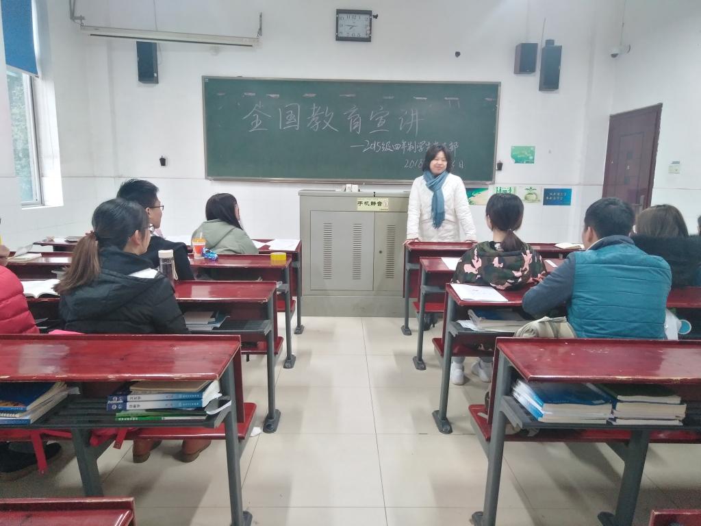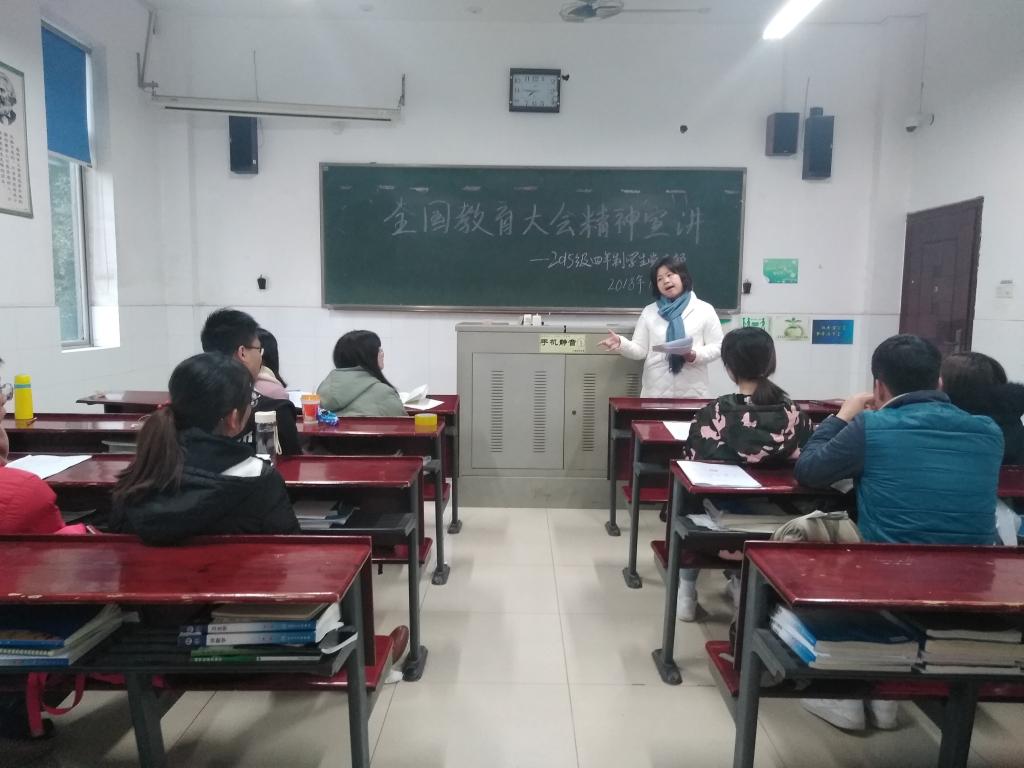 12月6日下午3点js555888金沙老品牌15级四年制学生党支部书记张晓红老师为支部党员学生进行了全国教育精神宣讲。张老师从全国教育大会在我国教育发展史上的意义、习近平总书记在全国教育大会上的讲话的精髓要义、习近平总书记在全国教育大会上提出的“六个下功夫”是新时代人才培养的行动指南三个方面给党员同学做了详细又贴切的解读。会上张老师强调全国教育大会首次定位“教育是国之大计、党之大计”,显示了党和国家对教育的高度重视。希望各位同学意识到,大学不应该只充斥着“吃喝玩乐”,而是每人都要有一份责任感、一份使命感,凝心聚力,刻苦学习,努力钻研,为校争光,把建设新时代的一份责任放在心中,扛在肩头。