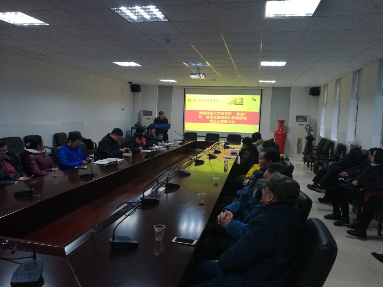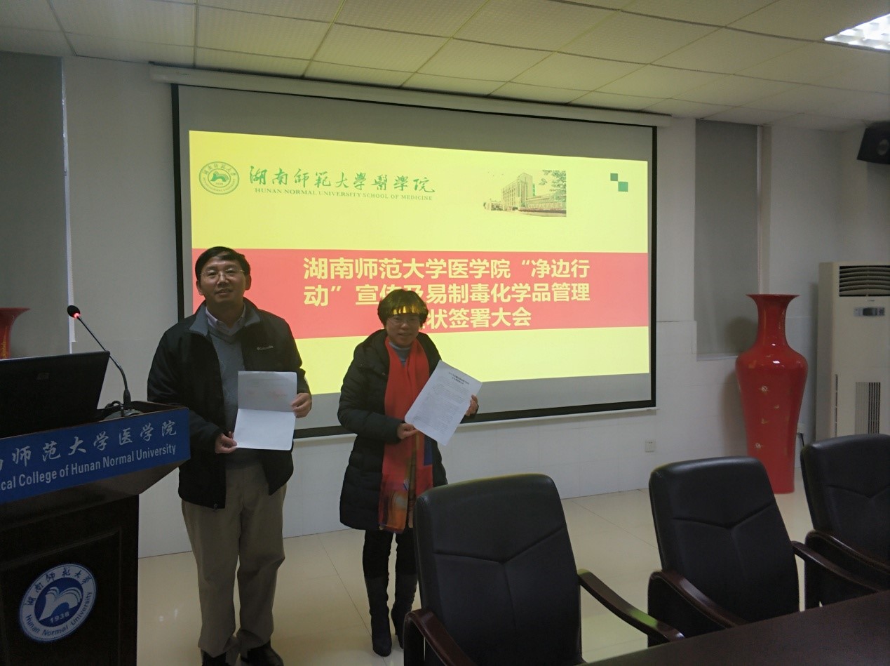 2018年12月10日,金沙官网在仁医楼207召开“净边行动”宣传及易制毒化学品管理责任状签署大会,院长何祖平、党委书记鄢朝晖、副院长张坚松出席了会议。会议由院长助理贺权源教授主持,医药学实验管理中心代主任余星教授及涉及易制毒化学品管理、使用的人员参加了会议。