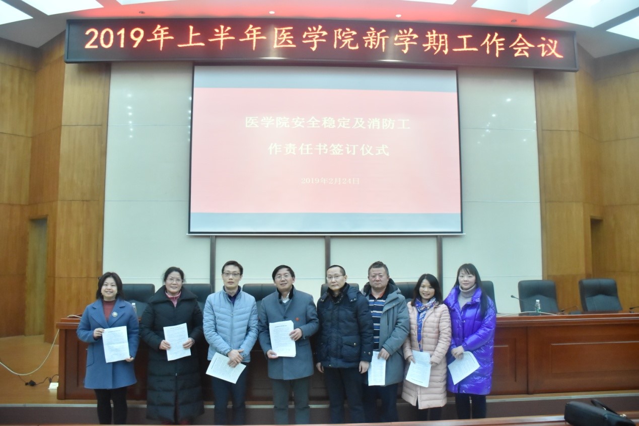 会上,各系(中心)、实验室主任,各行政部门主任分别签署并向院长递交《js555888金沙老品牌安全稳定工作部门管理人责任书》和《js555888金沙老品牌消防安全工作部门管理人责任书》。