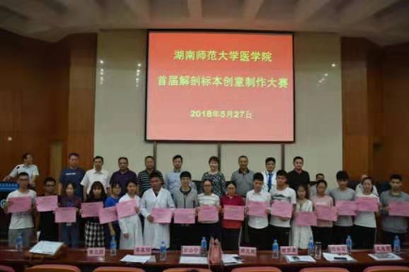 2018年12月,由湖南省解剖学会主办的“回归本科教育,服务卓越医生培养”第六届断层影像解剖学论坛评奖揭晓。金沙官网解剖学实践创新团队再获佳绩,在湖南省首届解剖学绘图比赛、湖南省首届解剖学标本现场制作大赛、解剖学瓶装标本比赛、学生论坛四个赛场中共获一等奖1项,二等奖1项,三等奖11项。