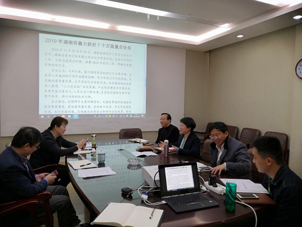 与会人员按照2019年学校党委理论学习中心组专题学习要求,结合习近平总书记在庆祝改革开放40周年大会上的重要讲话精神,认真学习了习近平在省部级主要领导干部坚持底线思维着力防范化解重大风险专题研讨班开班式上的重要讲话精神,学习了中央经济工作会议和湖南省委经济工作会议精神。