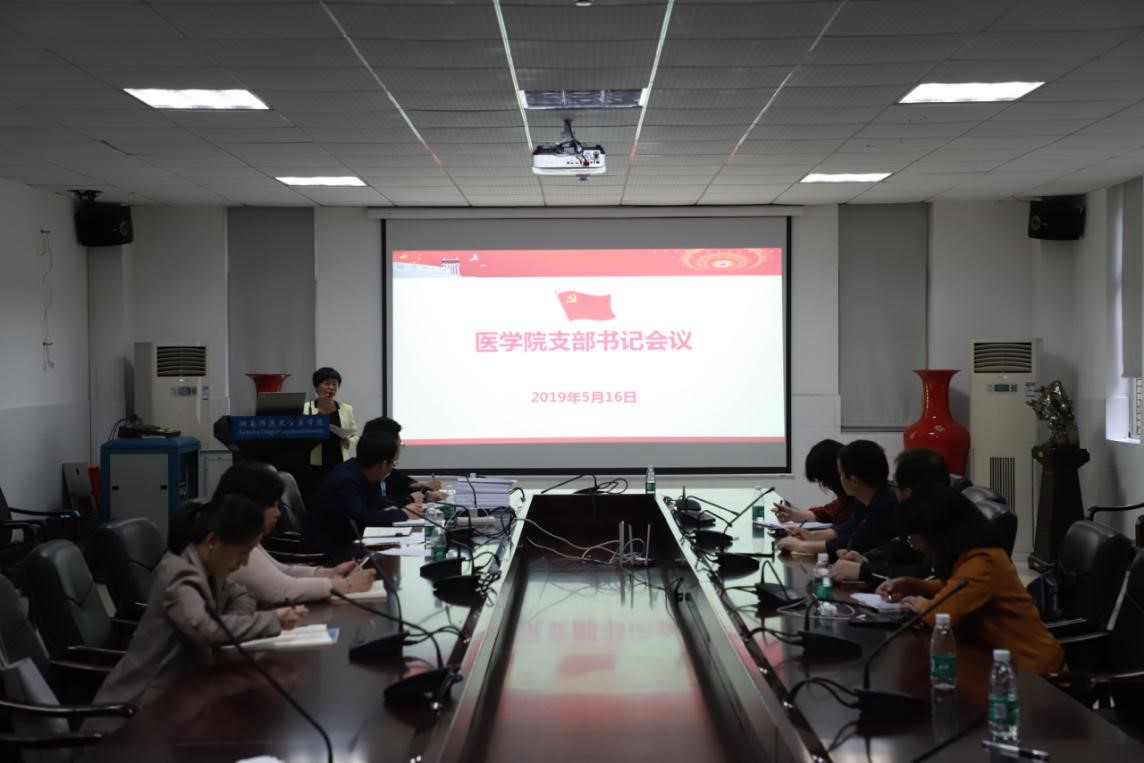 2019年5月16日下午,金沙官网党委召开本学期第二次支部书记大会,全体教工支部和本科生支部书记参加了会议,会议由党委书记鄢朝晖主持。
