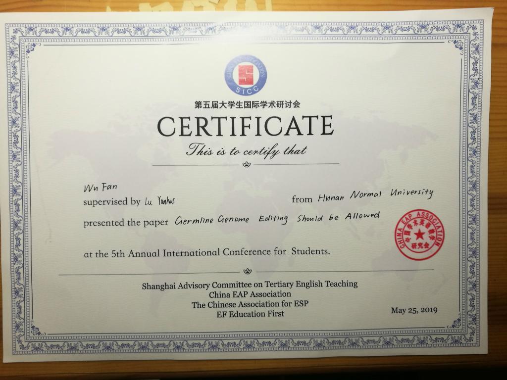 下午,各会场的平行小组交流汇报。在武汉华中科技大学分会场,75名学生在5个平行小组用英语进行了学术交流。金沙官网2016级学生吴璠在外国语学院鲁艳辉老师指导下,历时四个月完成了从选题到提交摘要到最终成文全过程。经过层层筛选,其摘要成功被华中科技大学分会场录取,吴璠同学围绕基因编辑问题以“Germline Gene Editing Should Be Allowed”为题在会场展开英文论文宣讲,与各校优秀学生用英文交换了各自的研究方向及研究思路。吴璠同学称,通过参加此次研讨会不仅开拓了眼界,看到了自身与他人的差距,更见识到其他高校学生扎实的科研能力和高水平的英文表达能力,也充分认识到英语与学术知识的结合必将是未来学术发展的需求趋势。