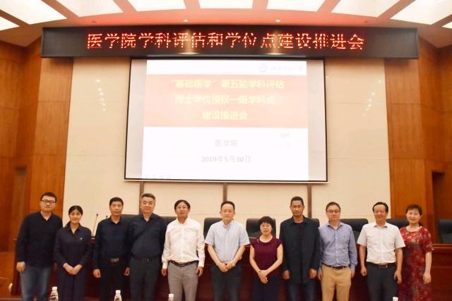 5月30日下午三点,js555888金沙老品牌在仁医楼学术报告厅举行学科评估和学位点建设推进会,研究生院院长刘子兰、学位办主任杜继军、校发规处副处长佘利忠应邀出席。院党委书记鄢朝晖主持会议。