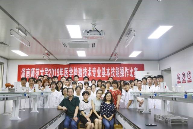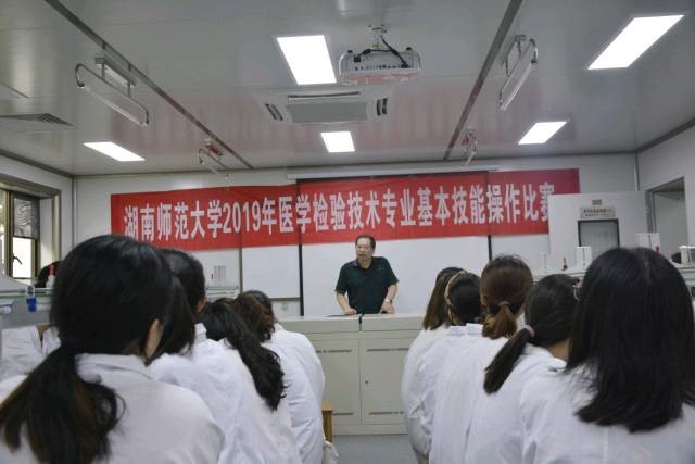 湘雅三医院检验科陈丽华、省人民医院黎村艳老师、921医院魏平老师及检验系部分教授担任评委。比赛项目涉及骨髓细胞形态、脱落细胞形态、病原体形态辨认、毛细血管采血、细胞计数、生化基本技能操作等内容。