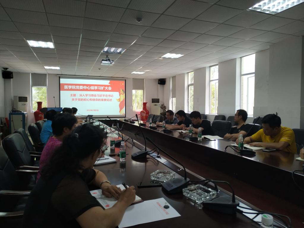 7月3日下午,金沙官网在仁医楼207会议室召开党委中心组(扩大)专题学习会,传达学习学校党委中心组专题学习会议精神,集体学习习近平总书记关于党的初心和使命的重要论述和习近平新时代中国特色社会主义思想的科学理论体系。院党委中心组全体成员及各支部书记参加会议。院党委书记鄢朝晖主持学习会。