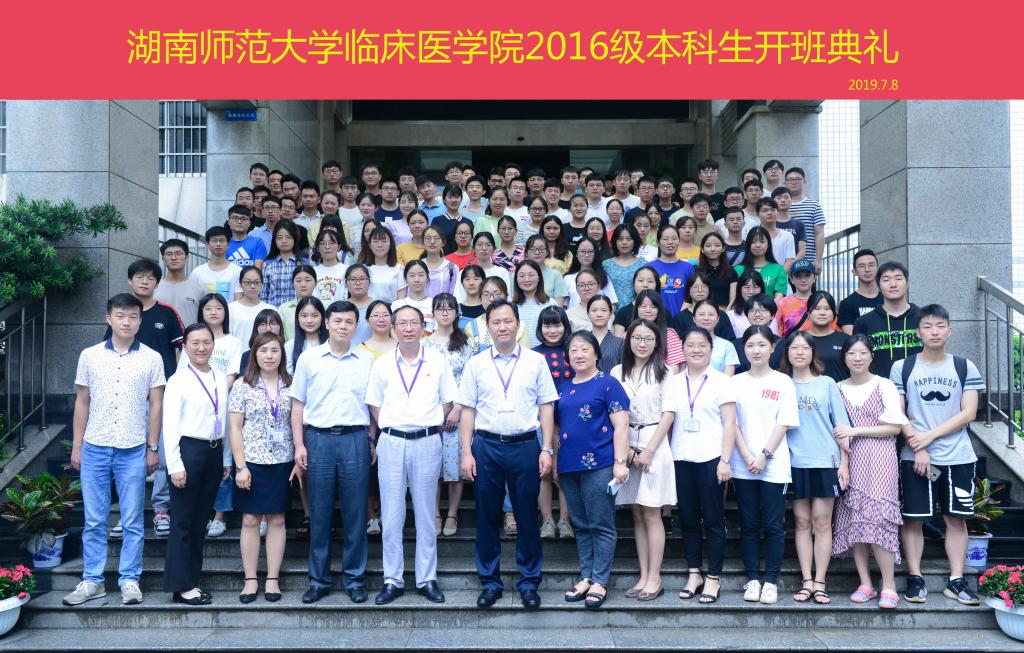 7月8日上午8:30,金沙官网2016级临床医学专业本科生见习开班典礼暨入院培训于湖南省人民医院综合楼15楼隆重举行。湖南省人民医院党委书记唐建明、湖南省人民医院院长李小松、临床js555888金沙老品牌院长蒋波、教学部主任常清明、教师代表郭莹教授和彭教授出席了本次典礼。开班典礼由教学部主任常清明主持。