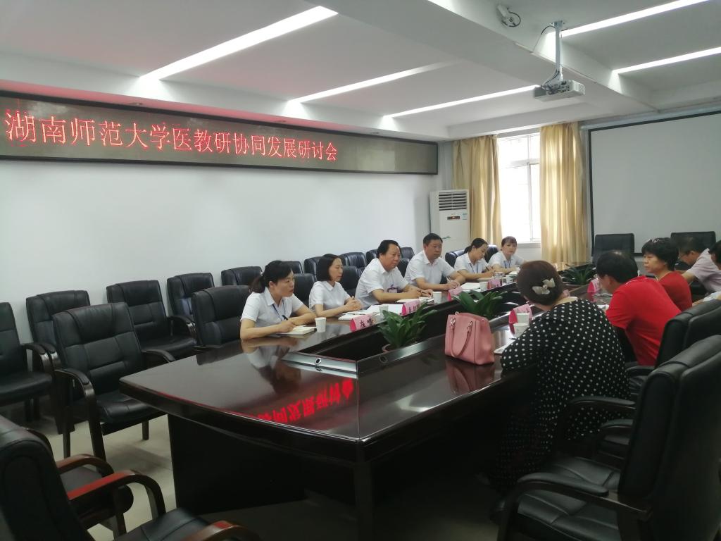 下午,在行政楼三楼会议室举行了医教研协同发展研讨会。会上副院长张坚松就此次临床教学巡查情况向四医院做了通报,对第四医院各级领导、老师对金沙官网见、实习工作的重视、支持及辛勤付出表示诚挚的感谢。医院院长宋桂林介绍了医院完善见、实习工作的举措和设想,并就医教研协同发展中心的进展情况进行了通报。js555888金沙老品牌院长何祖平、党委书记鄢朝晖及医院书记肖玉坤等一起回顾了学院与医院二十余年风雨同舟、密切合作的历程,分析了当前存在的困难和问题,并就双方在学科建设、研究生培养、学术交流等方面加强合作进行了深入交流,就尽快推动“医教研”协同发展进行了探讨。大家一致认为,当前面临着非常难得的发展机遇,在国家“健康中国”战略的指引下,在省市领导高度重视和大力支持下,双方应乘热打铁,同向同行,密切合作与交流,积极推动医教研协同发展研究院的尽早落地。