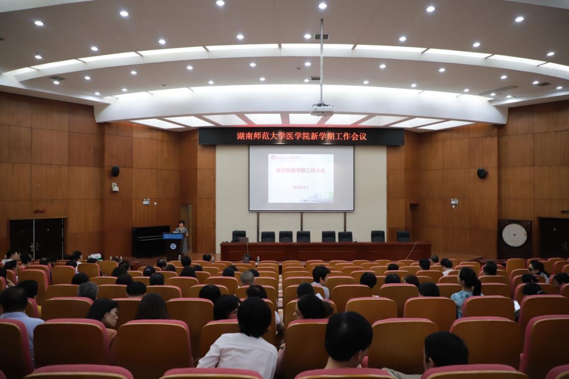 院长何祖平作大会工作报告,他从党建、教学科研、学科学位点建设、人才引进与培养、学生工作及安全稳定与后勤保障工作等方面对2019年上半年的工作成效进行了全面总结,他指出,学院党建工作在加强班子建设和基层党组织建设,全面推进“三全育人”综合改革试点,推动学院文化建设,有效做好精准扶贫工作等方面颇有成效。在教学工作方面,获批临床医学和药学两个省级一流本科专业,实现省教学成果一等奖零的突破,立项多项教研教改和课程建设课题,获得多项教育部和省级教学技能大奖,成果突出。在科研和学科建设方面,基础医学博士点借学位点动态调整的机遇,通过了专家组和校学术委员会评审,先后获省科技重大专项和省重点研发计划课题,有望获批学院第三个省级重点实验室,获三项国家自科基金和一项国家社科基金,发表了多篇高质量的SCI论文,大学生创新课题立项居全校前列。在学生工作方面,完善了班导师制,2019届毕业生考研上线率不断攀升,2019级招生质量创历史新高,在校学生先后获省挑战杯赛大奖、全国医学生解剖绘图大赛大奖及学校太极拳比赛一等奖、全校学生排球赛冠军等优异成绩。同时何院长从进一步加强党的建设和领导、持续加强学位点和学科建设、加大人才引进和培养力度、加强品牌专业建设、积极推进“三全育人”综合改革试点工作、加强师德师风和学风建设、改善医学办学条件及提高管理效率等方面对下学期的重点工作进行了部署。