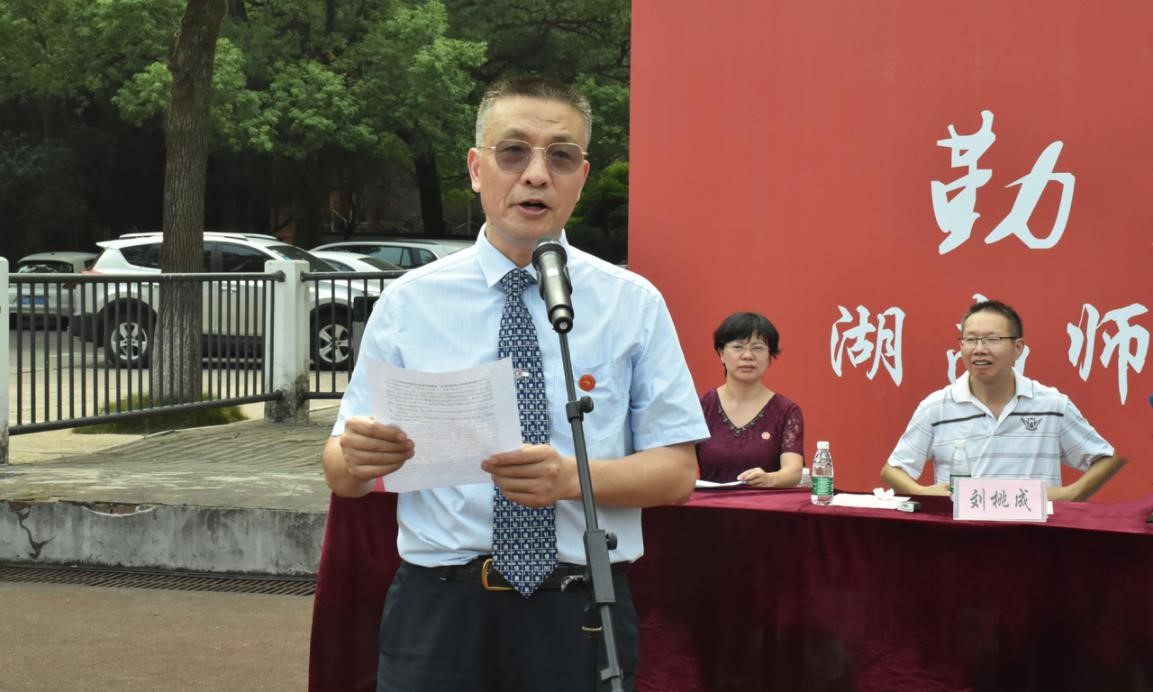 伴着明媚的骄阳与学子们热情的歌声,开学典礼正式拉开序幕。庄严的升旗仪式过后,院长何祖平首先致辞,他将这次讲话的主题概括为“心怀梦想,‘医’路有你”。他简要地介绍了js555888金沙老品牌近年在学术科研方面取得的骄人成就,并从各个方面为新生介绍学校情况,为新生立志与圆梦的道路指明方向。同时,他也分别对本科和研究生新生提出有针对性的三点希望。他提到,对于本科生,首先要做到“不忘初心,勤勉学习,不负韶华”,在不辜负自己与时光之后,再能“常怀仁者与同情之心”,为日后的工作奠定成功的心理基础,最后是“坚守理想,志存高远”,呼吁每一个新生做新时代的追梦人;而对于研究生,则是立足于科研指出三点要求,希望更多新生以成为“医学科学家”为目标,谱写人生华丽篇章。