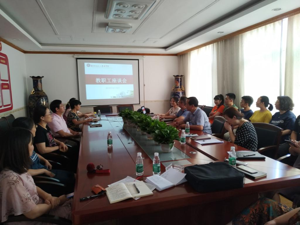 2019年9月10日下午,为庆祝第35个教师节,对教职工进行慰问和关怀,金沙官网在办公楼四楼会议室举办了主题为“弘扬高尚师德,潜心立德树人”教师节教师代表座谈会。全体院领导、各系办教职工你代表出席此次会议,本次会议由党委书记鄢朝晖主持。