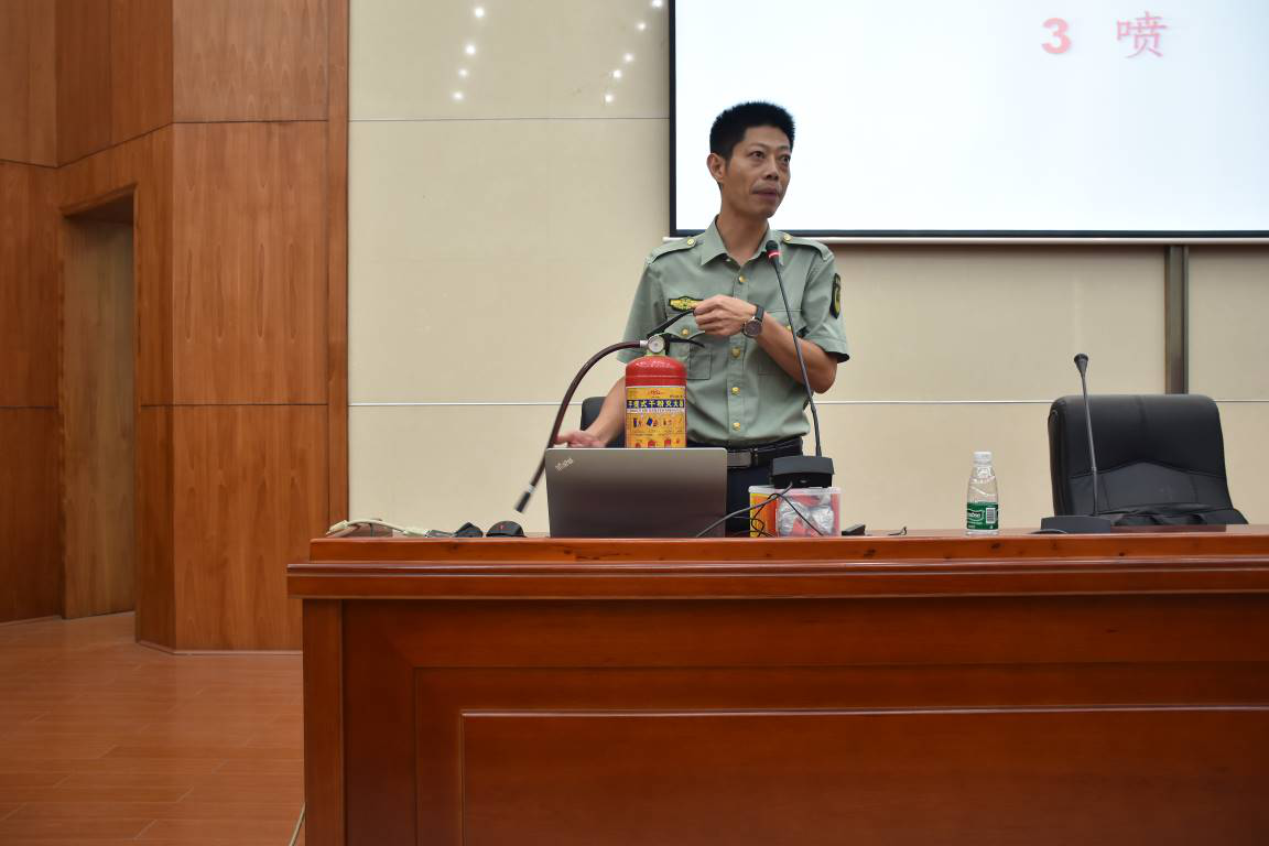 活动开始,学工办主任张晓红对此次讲座致辞,拉开了讲座序幕。唐胜辉教官先为我们播放了两段面对火灾时不同处理方式的火灾视频,正确的应对方式引起了新生们对消防安全知识的极大兴趣,他随后结合各种火灾案例,向大家介绍了火灾的起因、消防安全工作的重要性、火险的识别、初期火灾处置、报火警时的方法和家庭防火等消防常识,同时他还教导新生们如何预防火灾,以及如何从不同的火灾现场逃生,提倡防安全“四个能力”建设,他希望大家做到“人走断电”。随后,唐胜辉还在现场为我们演示了各种消防器械的使用方法,并对新生们的问题一一解答。