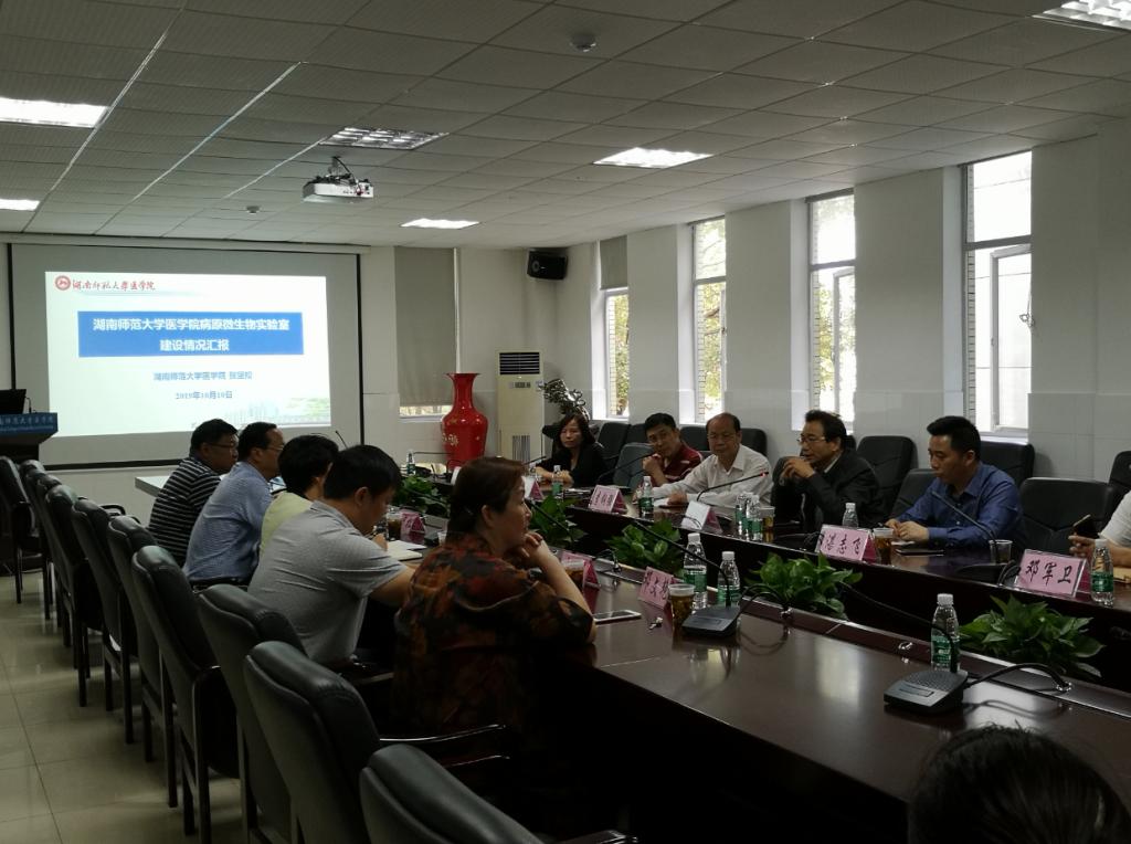 2019年10月10日上午,湖南省卫生健康委员会科教处处长石国勇带队赴金沙官网进行病原微生物实验室生物安全调研,省卫健委科教处副调研员李钢强主持调研。