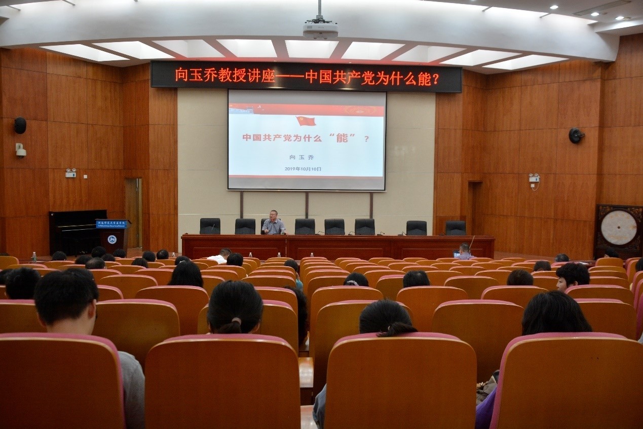 向玉乔教授引经据典、旁征博引,通过理论联系实际,用大量鲜活的实例,向大家展示了中国共产党是一个具有坚强领导核心的政党,是一个开放包容、具备特别优秀品质和优良传统的政党,是一个守住了思想之本、民心之本、道德之本的政党,是一个有着一支敢担当、重实干、讲奉献的优秀党员队伍的政党,中国共产党正是依靠诸多的优秀特质,成为始终走在时代前列、敢于自我革命、人民衷心爱戴、经得起各种考验的马克思主义执政党,最终带领中华民族迎来了从站起来、富起来到强起来的伟大飞跃。