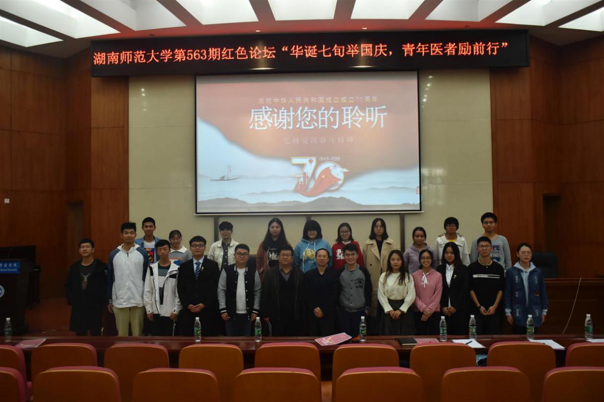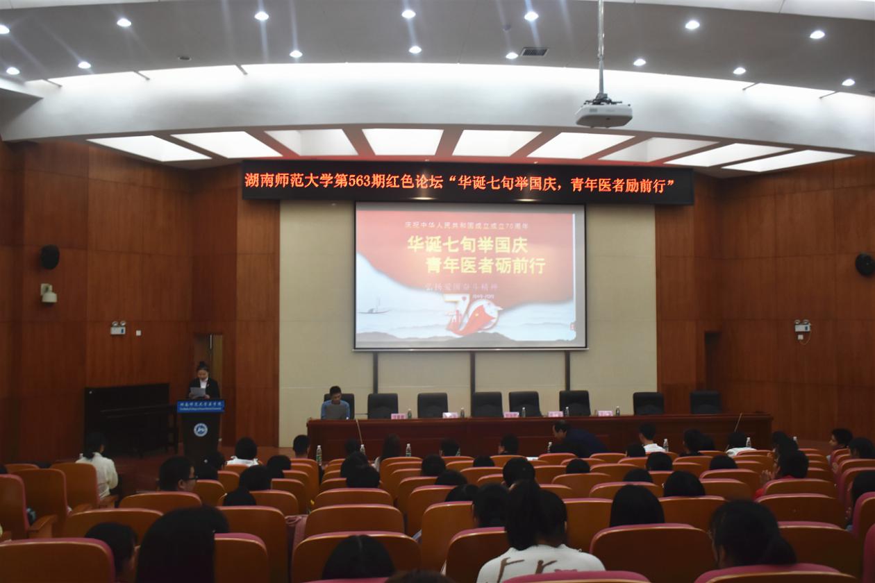 10月29日中午,由金沙官网团委承办的第563期红色论坛“华诞七旬举国庆,青年医者励前行”在学术报告厅举行。院党委书记鄢朝晖、党委副书记陈松、临床医学系主任于才红等作为嘉宾出席论坛。