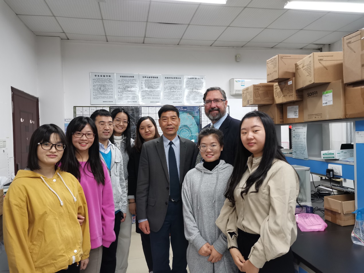 学术报告会后,参会各教授与Rosol教授合影留念,并一同前往湖南省“小分子靶向药物研究与创制”重点实验室和js555888金沙老品牌“肿瘤干细胞与转化医学”重点实验室,就实验项目研究进行了现场交流与指导。