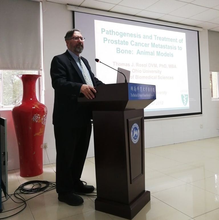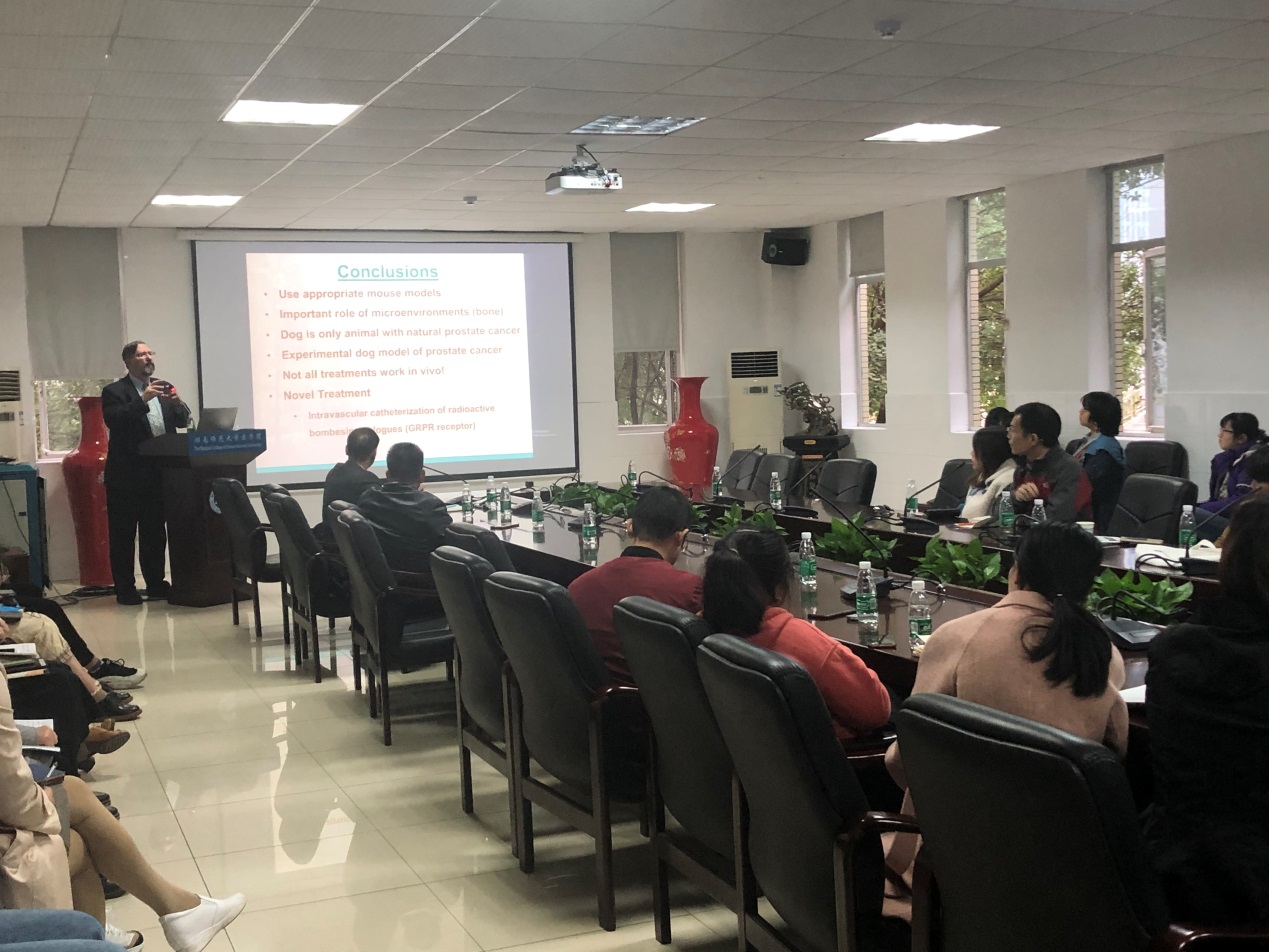 2019年11月21日下午,在金沙官网207会议室,美国俄亥俄大学骨病医学教授Thomas J. Rosol应邀为金沙官网师生带来以“Pathogenesis and Treatment of Prostate Cancer Metastasis to Bone: Animal Models”为主题的学术讲座。讲座由金沙官网主办,js555888金沙老品牌肿瘤干细胞与转化医学重点实验室承办。js555888金沙老品牌基础医学系主任、肿瘤干细胞与转化医学重点实验室负责人邓锡云教授主持讲座。