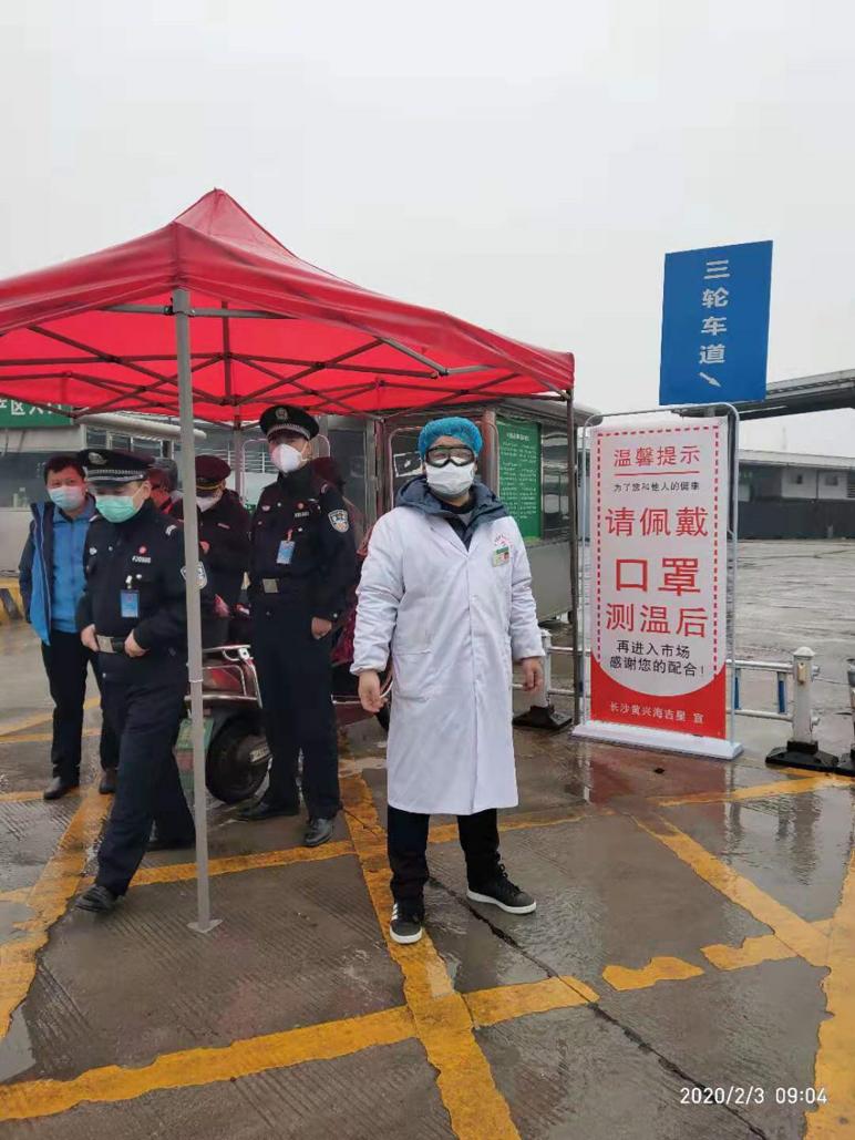 29日(大年初五),单位根据不断变化的疫情形势,安排王浩湘担任海吉星市场防疫工作组组长,驻守市场开展夜间排查工作。长沙海吉星国际农产品物流园是全国最大的蔬菜中转枢纽,它的安全直接关系到中南五省菜蓝子的安全。这里昼夜人流量大,人员复杂,这给防疫检测工作带来了极大的压力。王浩湘不辞辛苦,和同事一起严防死守,对人员挨个认真检查,日均排查五百余人,做到了严格阻断病毒传播途径,保障了市场交易的安全有序开展。
