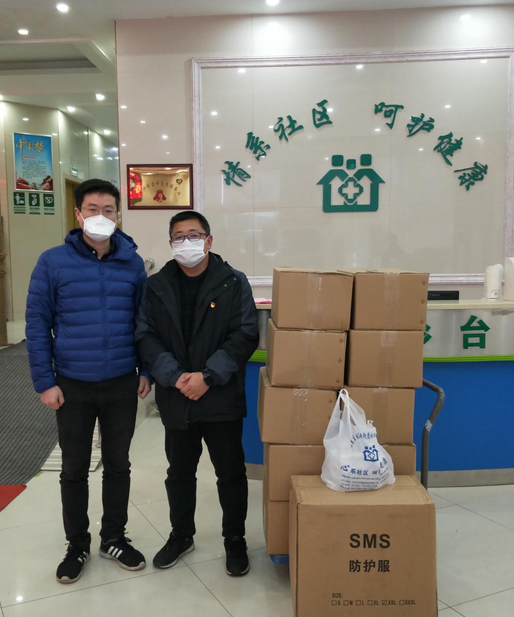 2020年2月15日上午,js555888金沙老品牌校友、民革湖南省委农林水支部委员、湖南汉尔森医疗投资有限公司董事长戴敬康向邵阳市北塔区捐赠了50件医学实验防护服、10件二氧化氯消毒液和20多个隔离护目镜共价值两万余元的物资,同心助力北塔区抗疫工作。中共邵阳市北塔区委常委、统战部部长向兵接受捐赠。