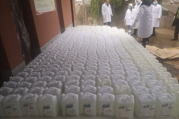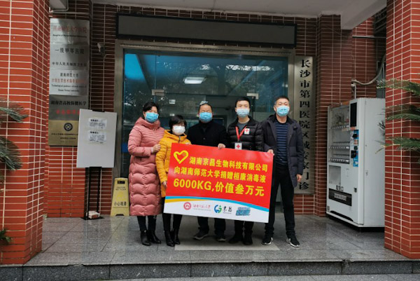 近日,湖南京昌生物科技有限公司通过省红十字会向我校捐赠六吨消毒液。